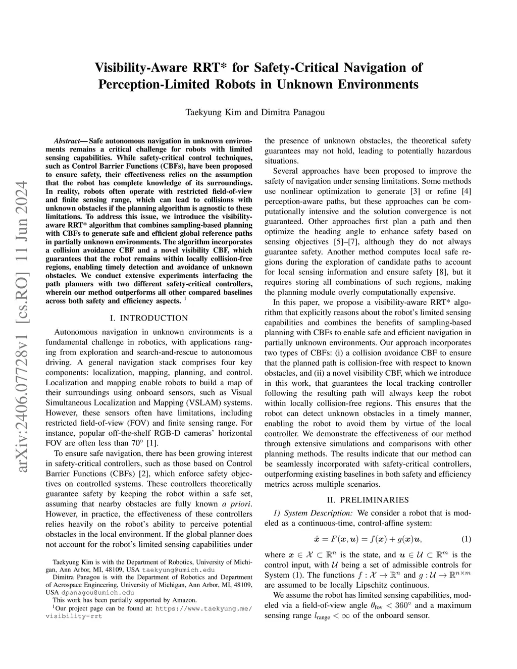 Visibility-Aware RRT* for Safety-Critical Navigation of Perception-Limited Robots in Unknown Environments