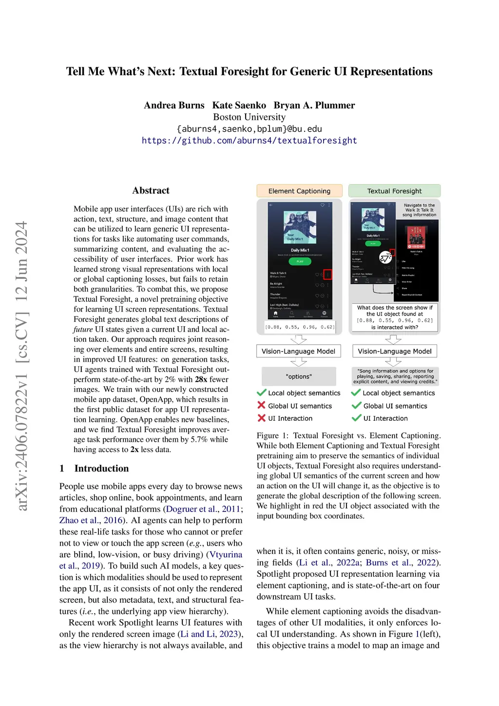 Tell Me What's Next: Textual Foresight for Generic UI Representations