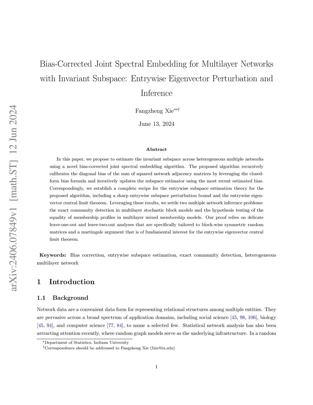 In this paper, we propose to estimate the invariant subspace across heterogeneous multiple networks using a novel bias-corrected joint spectral embedding algorithm. The proposed algorithm recursively calibrates the diagonal bias of the sum of squared network adjacency matrices by leveraging the closed-form bias formula and iteratively updates the subspace estimator using the most recent estimated bias. Correspondingly, we establish a complete recipe for the entrywise subspace estimation theory for the proposed algorithm, including a sharp entrywise subspace perturbation bound and the entrywise eigenvector central limit theorem. Leveraging these results, we settle two multiple network inference problems: the exact community detection in multilayer stochastic block models and the hypothesis testing of the equality of membership profiles in multilayer mixed membership models. Our proof relies on delicate leave-one-out and leave-two-out analyses that are specifically tailored to block-wise symmetric random matrices and a martingale argument that is of fundamental interest for the entrywise eigenvector central limit theorem.