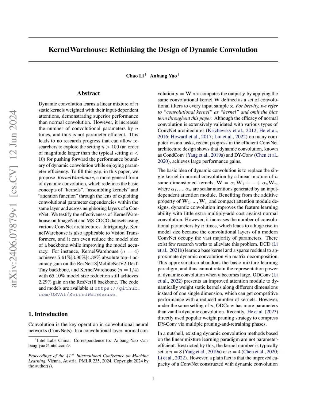 KernelWarehouse: Rethinking the Design of Dynamic Convolution