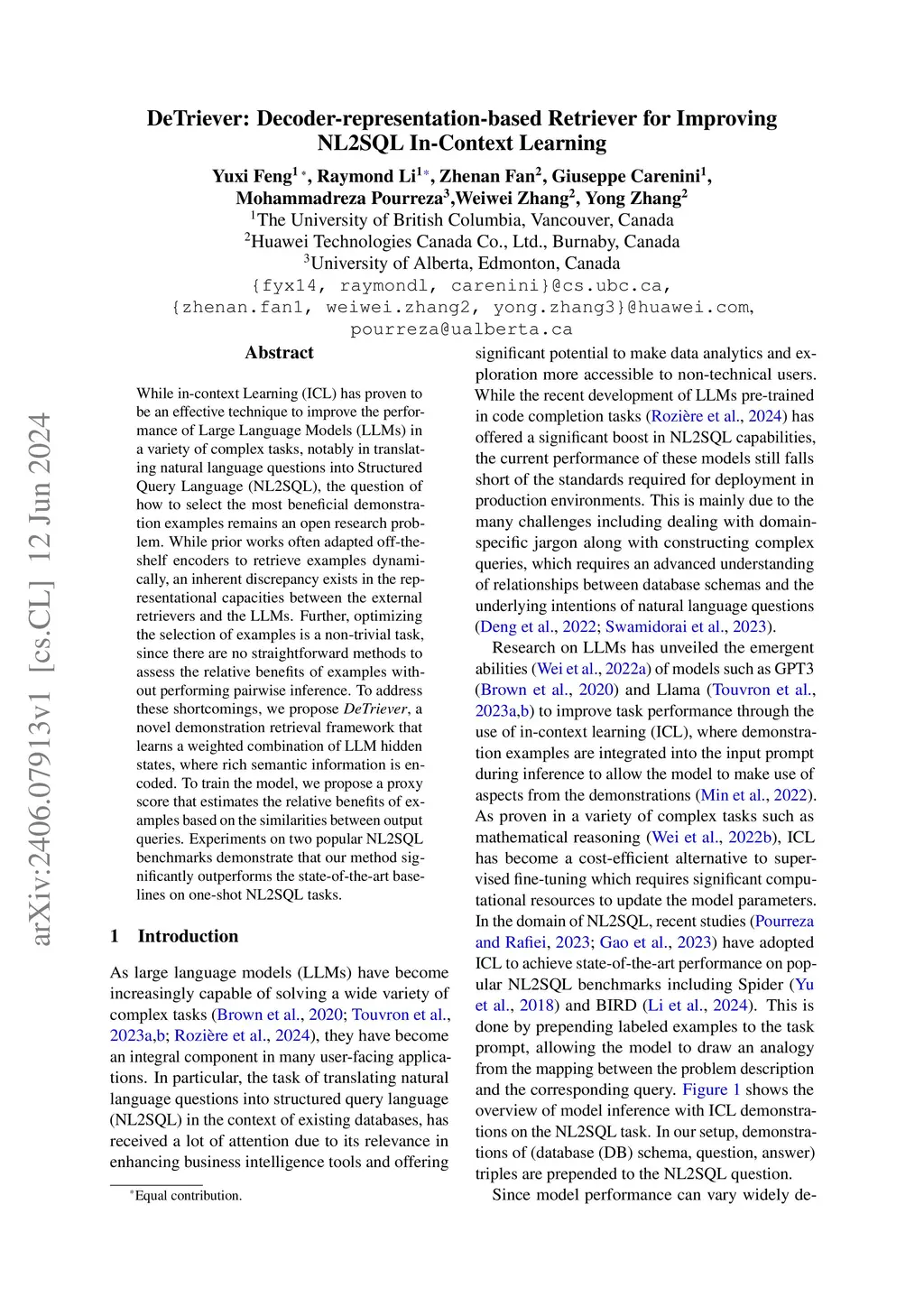 DeTriever: Decoder-representation-based Retriever for Improving NL2SQL