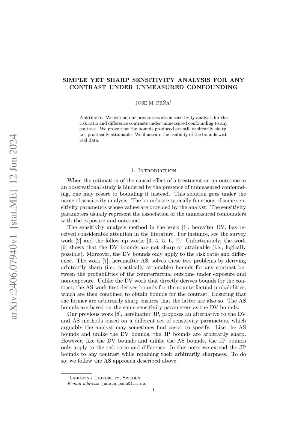 We extend our previous work on sensitivity analysis for the risk ratio and difference contrasts under unmeasured confounding to any contrast. We prove that the bounds produced are still arbitrarily sharp, i.e. practically attainable. We illustrate the usability of the bounds with real data.