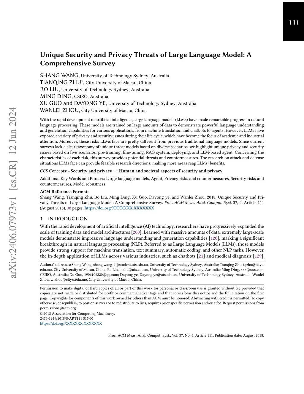 Unique Security and Privacy Threats of Large Language Models: A Comprehensive Survey