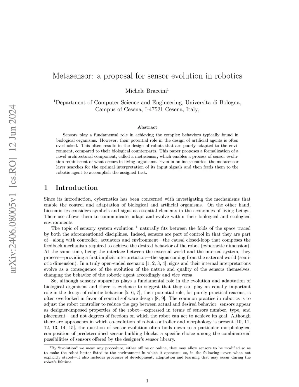 Metasensor: a proposal for sensor evolution in robotics