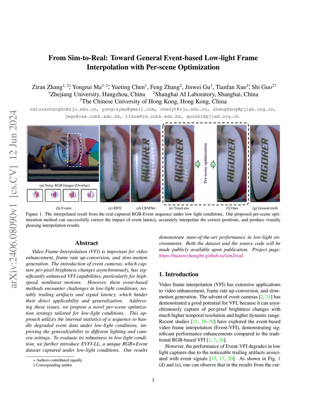 Video Frame Interpolation (VFI) is important for video enhancement, frame rate up-conversion, and slow-motion generation. The introduction of event cameras, which capture per-pixel brightness changes asynchronously, has significantly enhanced VFI capabilities, particularly for high-speed, nonlinear motions. However, these event-based methods encounter challenges in low-light conditions, notably trailing artifacts and signal latency, which hinder their direct applicability and generalization. Addressing these issues, we propose a novel per-scene optimization strategy tailored for low-light conditions. This approach utilizes the internal statistics of a sequence to handle degraded event data under low-light conditions, improving the generalizability to different lighting and camera settings. To evaluate its robustness in low-light condition, we further introduce EVFI-LL, a unique RGB+Event dataset captured under low-light conditions. Our results demonstrate state-of-the-art performance in low-light environments. Both the dataset and the source code will be made publicly available upon publication. Project page: https://naturezhanghn.github.io/sim2real.