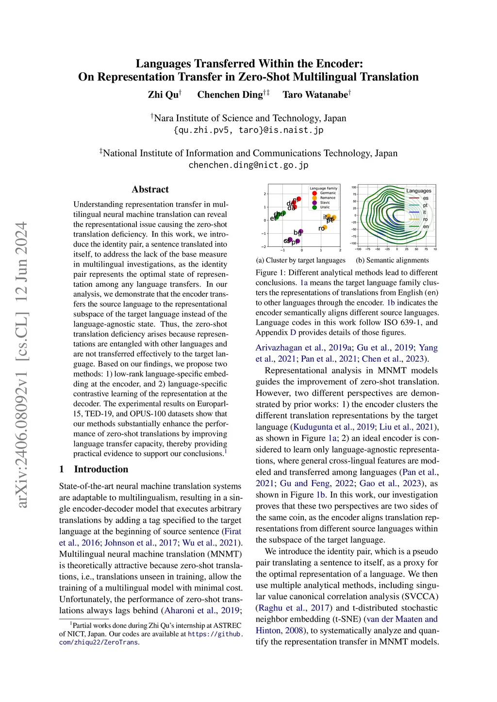 Understanding representation transfer in multilingual neural machine translation (MNMT) can reveal the reason for the zero-shot translation deficiency. In this work, we systematically analyze the representational issue of MNMT models. We first introduce the identity pair, translating a sentence to itself, to address the lack of the base measure in multilingual investigations, as the identity pair can reflect the representation of a language within the model. Then, we demonstrate that the encoder transfers the source language to the representational subspace of the target language instead of the language-agnostic state. Thus, the zero-shot translation deficiency arises because the representation of a translation is entangled with other languages and not transferred to the target language effectively. Based on our findings, we propose two methods: 1) low-rank language-specific embedding at the encoder, and 2) language-specific contrastive learning of the representation at the decoder. The experimental results on Europarl-15, TED-19, and OPUS-100 datasets show that our methods substantially enhance the performance of zero-shot translations without sacrifices in supervised directions by improving language transfer capacity, thereby providing practical evidence to support our conclusions. Codes are available atthis https URL.