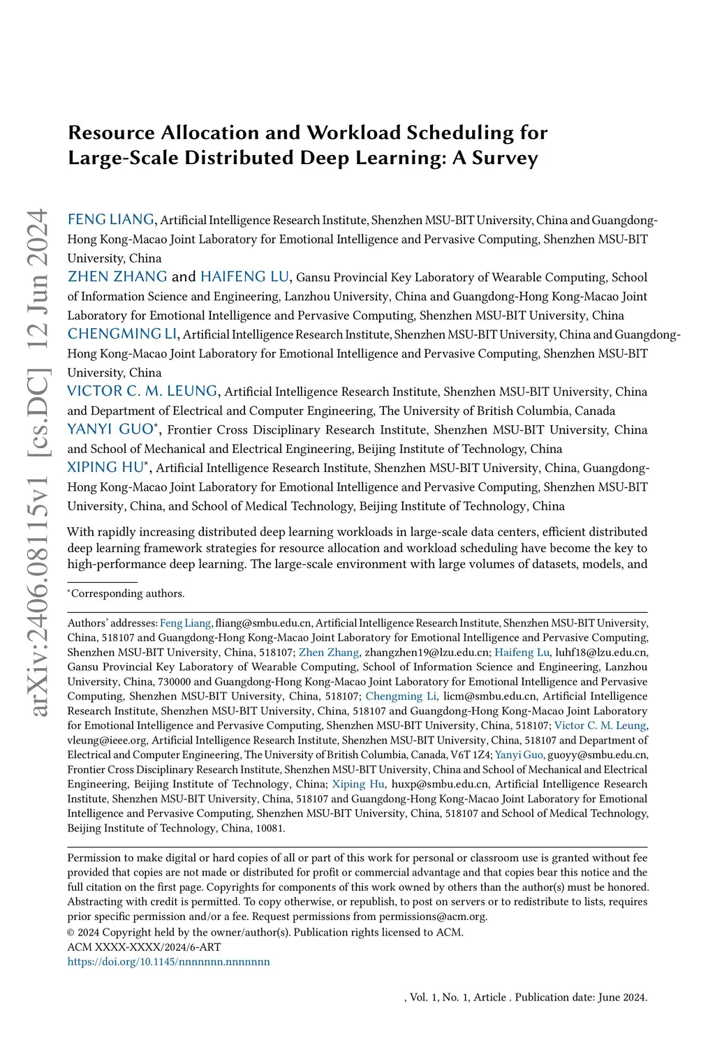 With rapidly increasing distributed deep learning workloads in large-scale data centers, efficient distributed deep learning framework strategies for resource allocation and workload scheduling have become the key to high-performance deep learning. The large-scale environment with large volumes of datasets, models, and computational and communication resources raises various unique challenges for resource allocation and workload scheduling in distributed deep learning, such as scheduling complexity, resource and workload heterogeneity, and fault tolerance. To uncover these challenges and corresponding solutions, this survey reviews the literature, mainly from 2019 to 2024, on efficient resource allocation and workload scheduling strategies for large-scale distributed DL. We explore these strategies by focusing on various resource types, scheduling granularity levels, and performance goals during distributed training and inference processes. We highlight critical challenges for each topic and discuss key insights of existing technologies. To illustrate practical large-scale resource allocation and workload scheduling in real distributed deep learning scenarios, we use a case study of training large language models. This survey aims to encourage computer science, artificial intelligence, and communications researchers to understand recent advances and explore future research directions for efficient framework strategies for large-scale distributed deep learning.