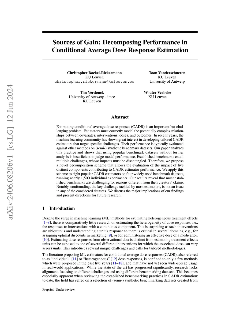 Estimating conditional average dose responses (CADR) is an important but challenging problem. Estimators must correctly model the potentially complex relationships between covariates, interventions, doses, and outcomes. In recent years, the machine learning community has shown great interest in developing tailored CADR estimators that target specific challenges. Their performance is typically evaluated against other methods on (semi-) synthetic benchmark datasets. Our paper analyses this practice and shows that using popular benchmark datasets without further analysis is insufficient to judge model performance. Established benchmarks entail multiple challenges, whose impacts must be disentangled. Therefore, we propose a novel decomposition scheme that allows the evaluation of the impact of five distinct components contributing to CADR estimator performance. We apply this scheme to eight popular CADR estimators on four widely-used benchmark datasets, running nearly 1,500 individual experiments. Our results reveal that most established benchmarks are challenging for reasons different from their creators' claims. Notably, confounding, the key challenge tackled by most estimators, is not an issue in any of the considered datasets. We discuss the major implications of our findings and present directions for future research.
