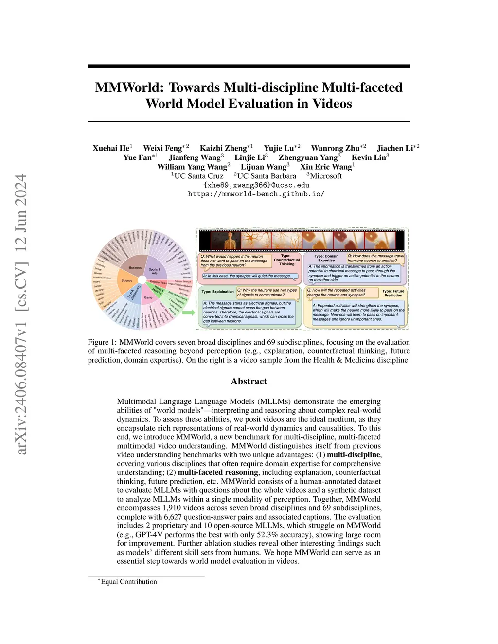 MMWorld: Towards Multi-discipline Multi-faceted World Model Evaluation