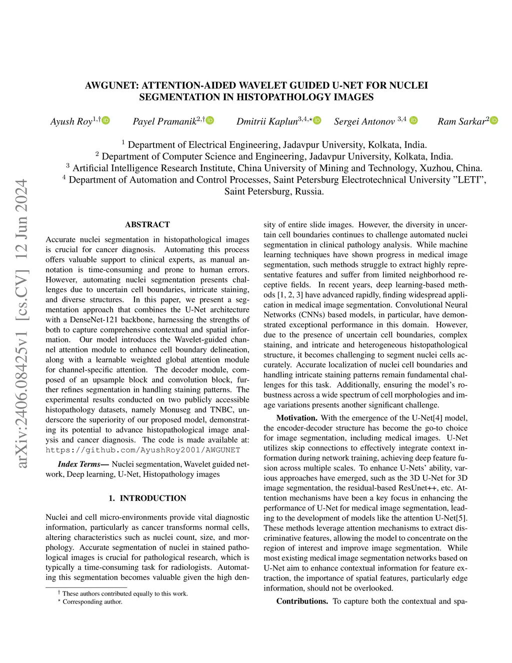 AWGUNET: Attention-Aided Wavelet Guided U-Net for Nuclei Segmentation in