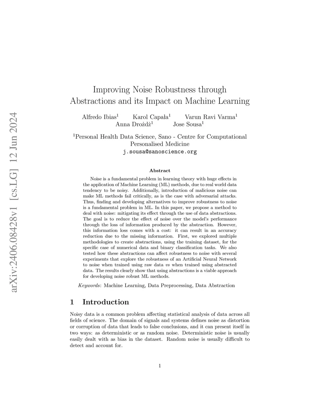 Noise is a fundamental problem in learning theory with huge effects in the application of Machine Learning (ML) methods, due to real world data tendency to be noisy. Additionally, introduction of malicious noise can make ML methods fail critically, as is the case with adversarial attacks. Thus, finding and developing alternatives to improve robustness to noise is a fundamental problem in ML. In this paper, we propose a method to deal with noise: mitigating its effect through the use of data abstractions. The goal is to reduce the effect of noise over the model's performance through the loss of information produced by the abstraction. However, this information loss comes with a cost: it can result in an accuracy reduction due to the missing information. First, we explored multiple methodologies to create abstractions, using the training dataset, for the specific case of numerical data and binary classification tasks. We also tested how these abstractions can affect robustness to noise with several experiments that explore the robustness of an Artificial Neural Network to noise when trained using raw data \emph{vs} when trained using abstracted data. The results clearly show that using abstractions is a viable approach for developing noise robust ML methods.
