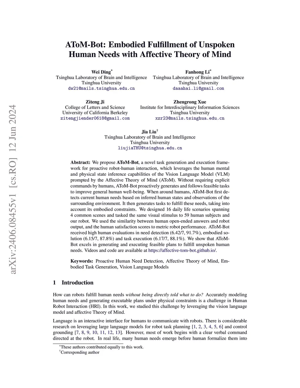 AToM-Bot: Embodied Fulfillment of Unspoken Human Needs with Affective