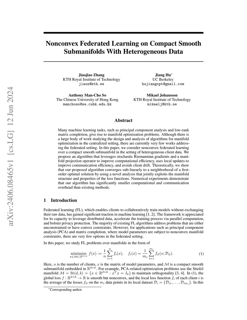 Nonconvex Federated Learning on Compact Smooth Submanifolds With