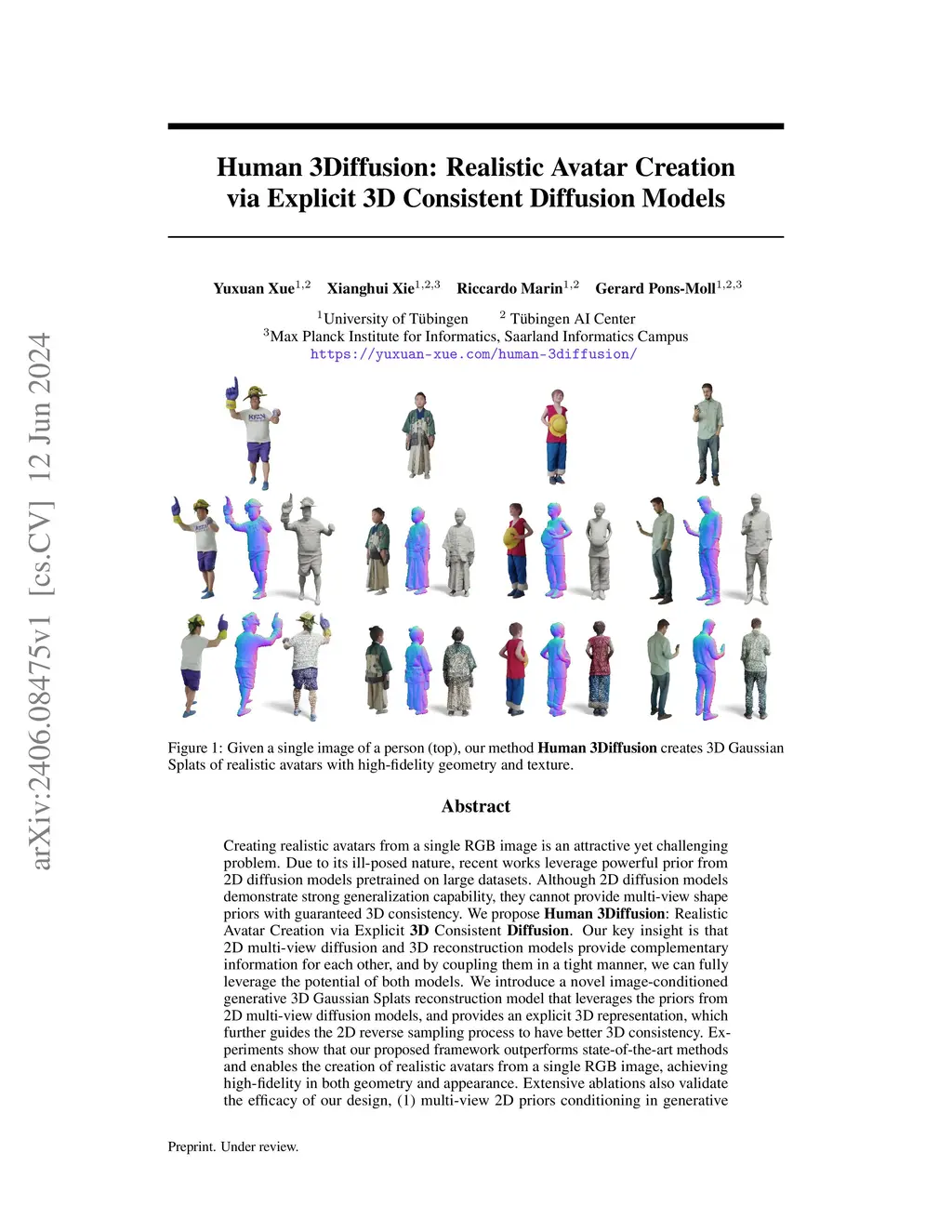 Human 3Diffusion: Realistic Avatar Creation via Explicit 3D Consistent