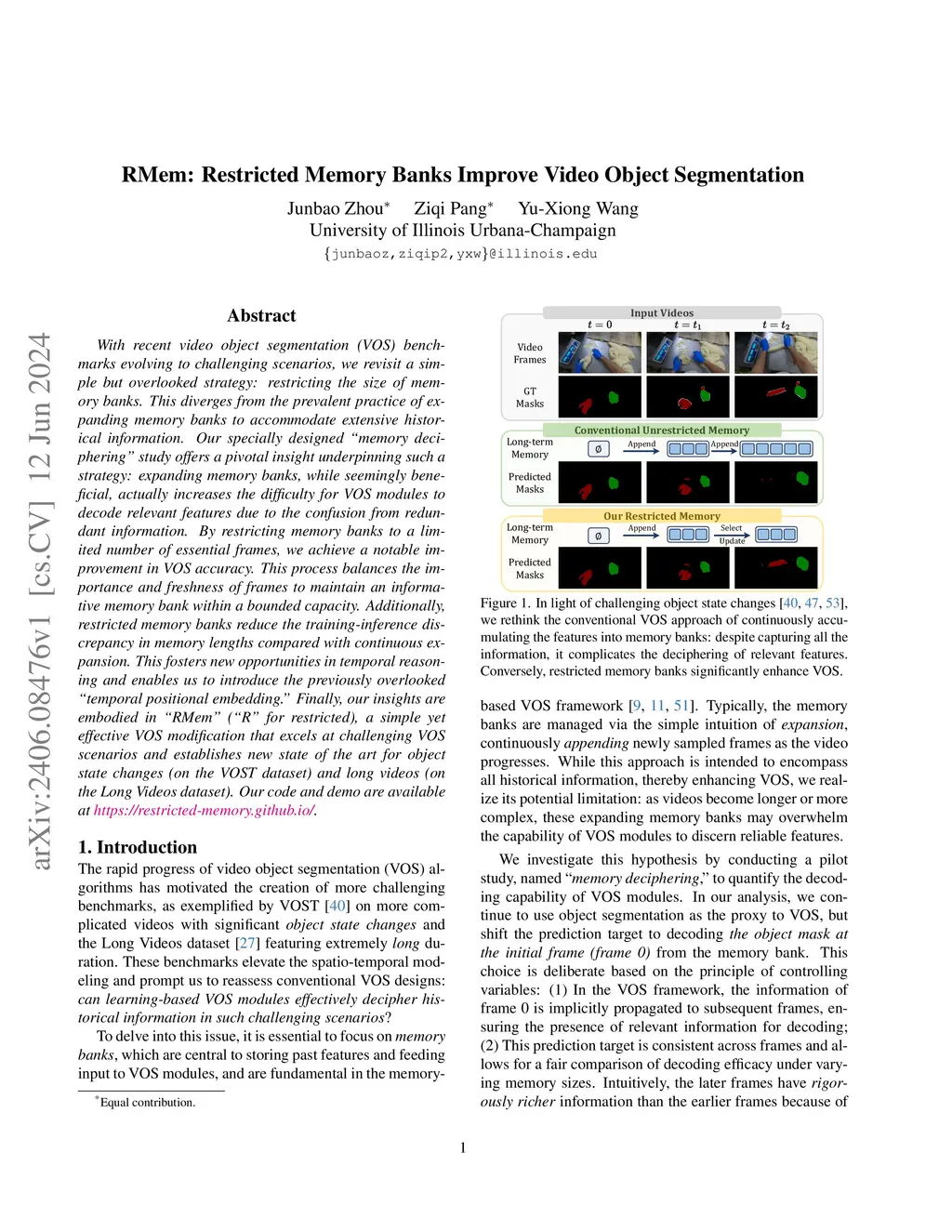RMem: Restricted Memory Banks Improve Video Object Segmentation