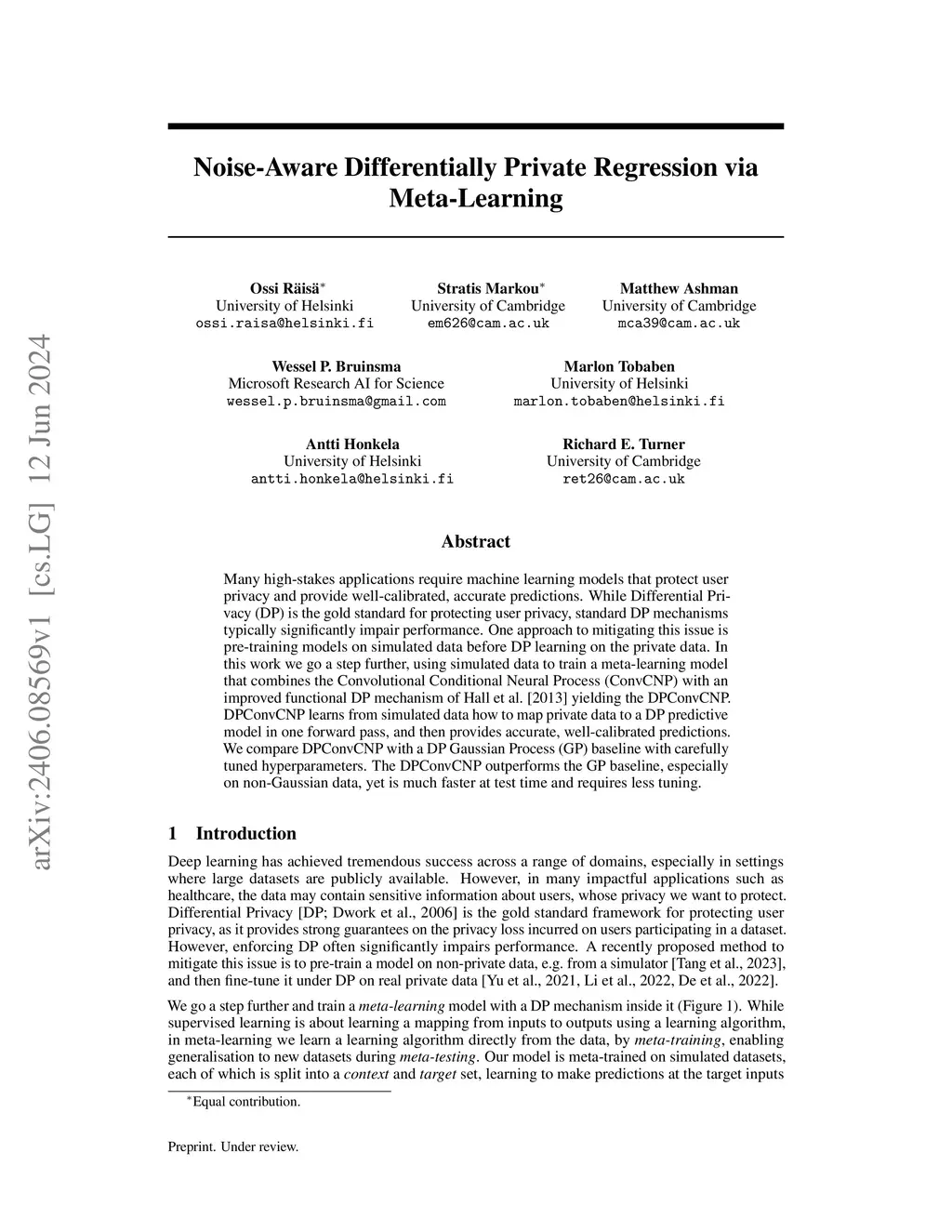 Noise-Aware Differentially Private Regression via Meta-Learning