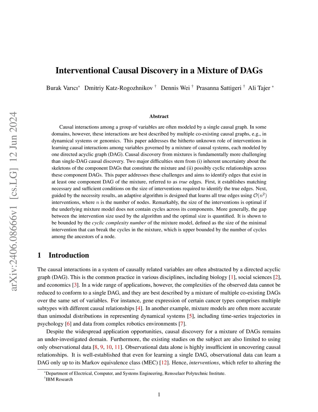 Causal interactions among a group of variables are often modeled by a single causal graph. In some domains, however, these interactions are best described by multiple co-existing causal graphs, e.g., in dynamical systems or genomics. This paper addresses the hitherto unknown role of interventions in learning causal interactions among variables governed by a mixture of causal systems, each modeled by one directed acyclic graph (DAG). Causal discovery from mixtures is fundamentally more challenging than single-DAG causal discovery. Two major difficulties stem from (i) inherent uncertainty about the skeletons of the component DAGs that constitute the mixture and (ii) possibly cyclic relationships across these component DAGs. This paper addresses these challenges and aims to identify edges that exist in at least one component DAG of the mixture, referred to as true edges. First, it establishes matching necessary and sufficient conditions on the size of interventions required to identify the true edges. Next, guided by the necessity results, an adaptive algorithm is designed that learns all true edges using interventions, where is the number of nodes. Remarkably, the size of the interventions is optimal if the underlying mixture model does not contain cycles across its components. More generally, the gap between the intervention size used by the algorithm and the optimal size is quantified. It is shown to be bounded by the cyclic complexity number of the mixture model, defined as the size of the minimal intervention that can break the cycles in the mixture, which is upper bounded by the number of cycles among the ancestors of a node.