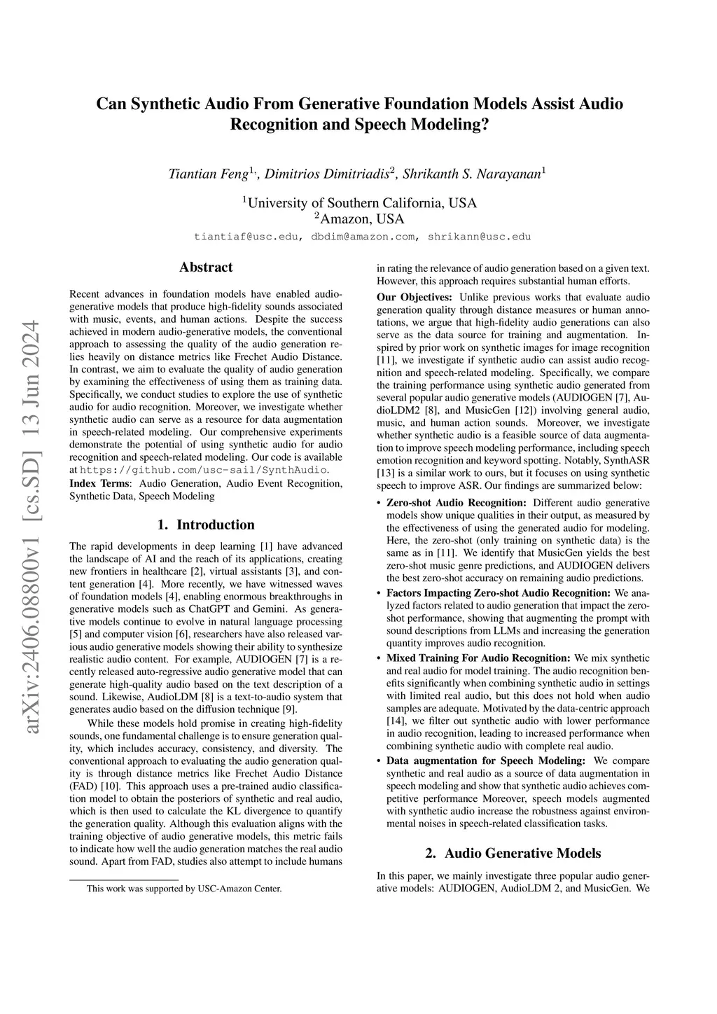 Recent advances in foundation models have enabled audio-generative models that produce high-fidelity sounds associated with music, events, and human actions. Despite the success achieved in modern audio-generative models, the conventional approach to assessing the quality of the audio generation relies heavily on distance metrics like Frechet Audio Distance. In contrast, we aim to evaluate the quality of audio generation by examining the effectiveness of using them as training data. Specifically, we conduct studies to explore the use of synthetic audio for audio recognition. Moreover, we investigate whether synthetic audio can serve as a resource for data augmentation in speech-related modeling. Our comprehensive experiments demonstrate the potential of using synthetic audio for audio recognition and speech-related modeling. Our code is available at https://github.com/usc-sail/SynthAudio.