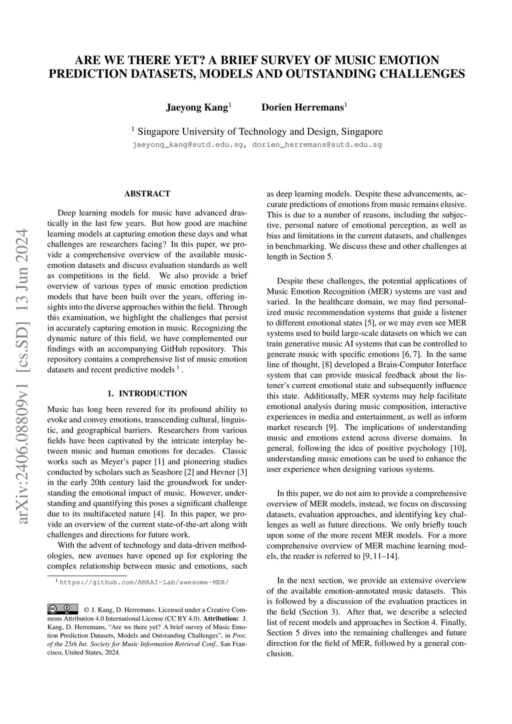 Are We There Yet? A Brief Survey of Music Emotion Prediction Datasets, Models and Outstanding Challenges
