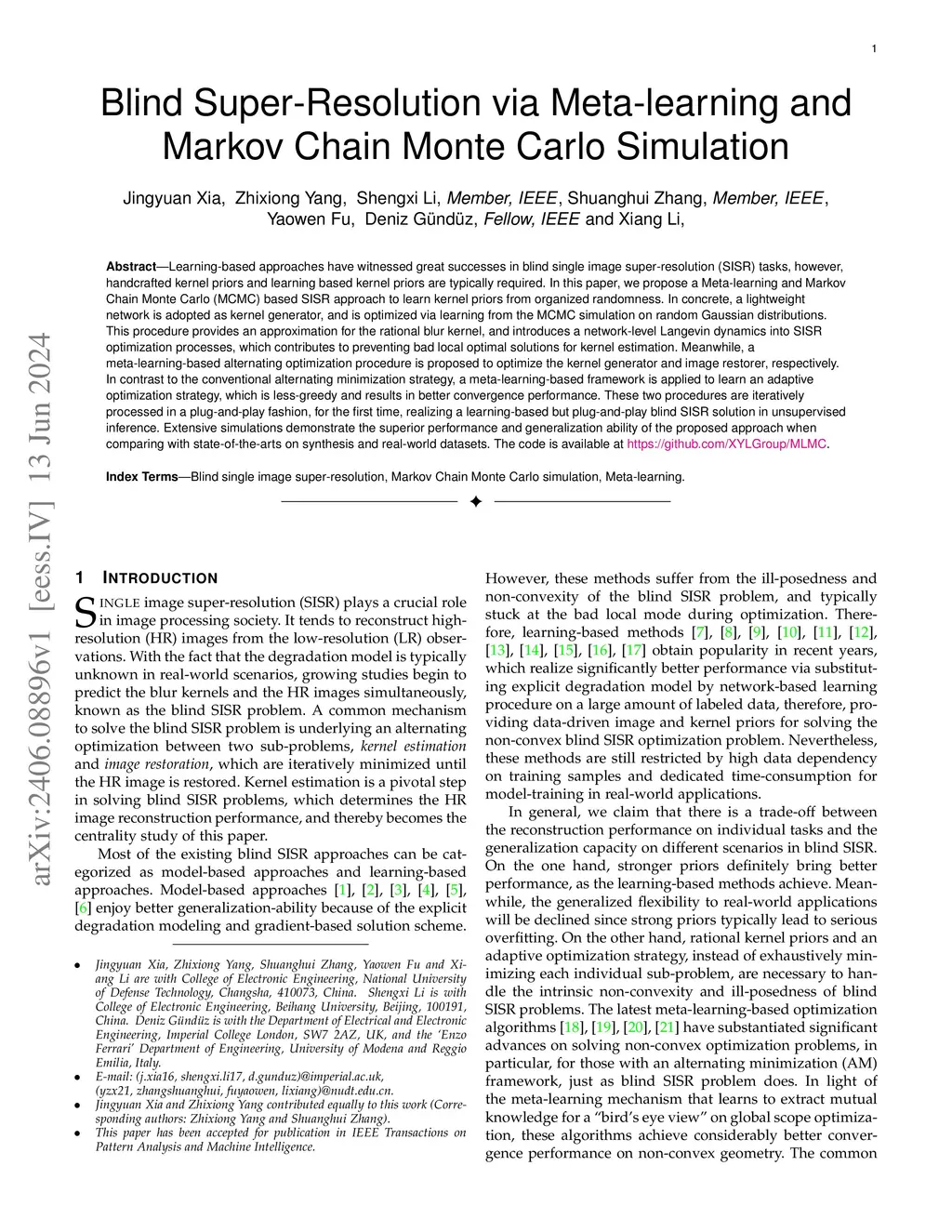 Blind Super-Resolution via Meta-learning and Markov Chain Monte Carlo