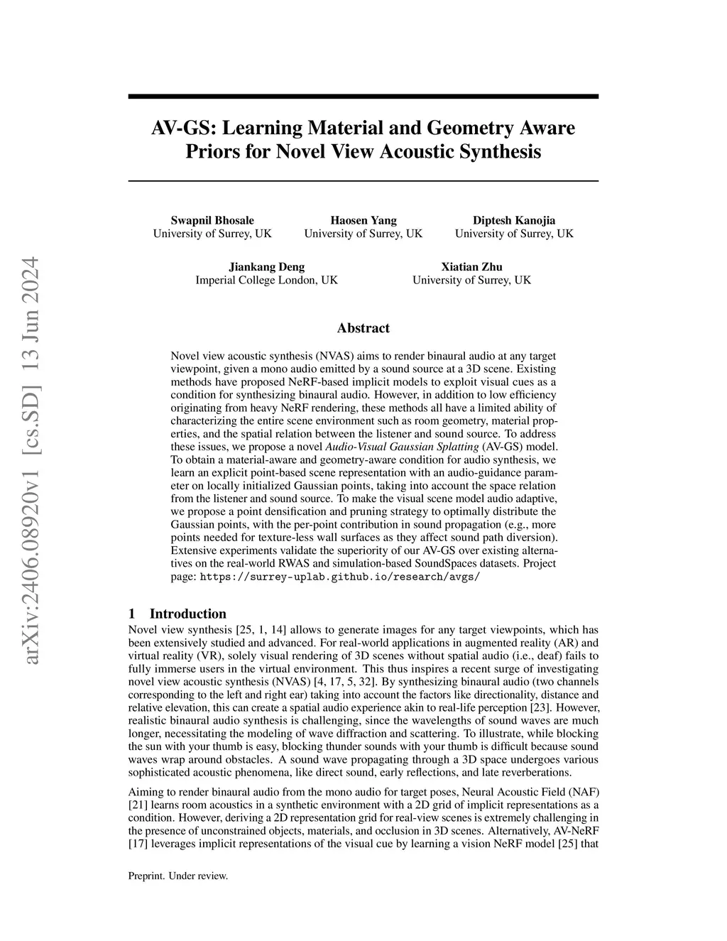 AV-GS: Learning Material and Geometry Aware Priors for Novel View Acoustic Synthesis