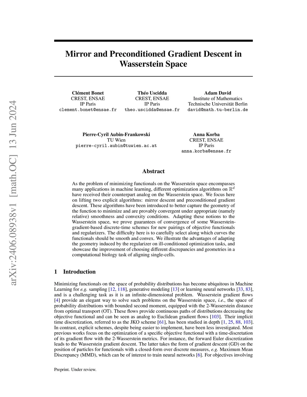 Mirror and Preconditioned Gradient Descent in Wasserstein Space