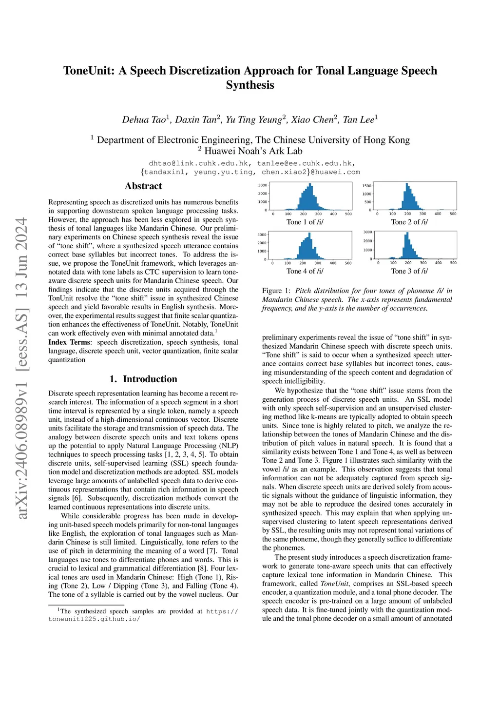 ToneUnit: A Speech Discretization Approach for Tonal Language Speech