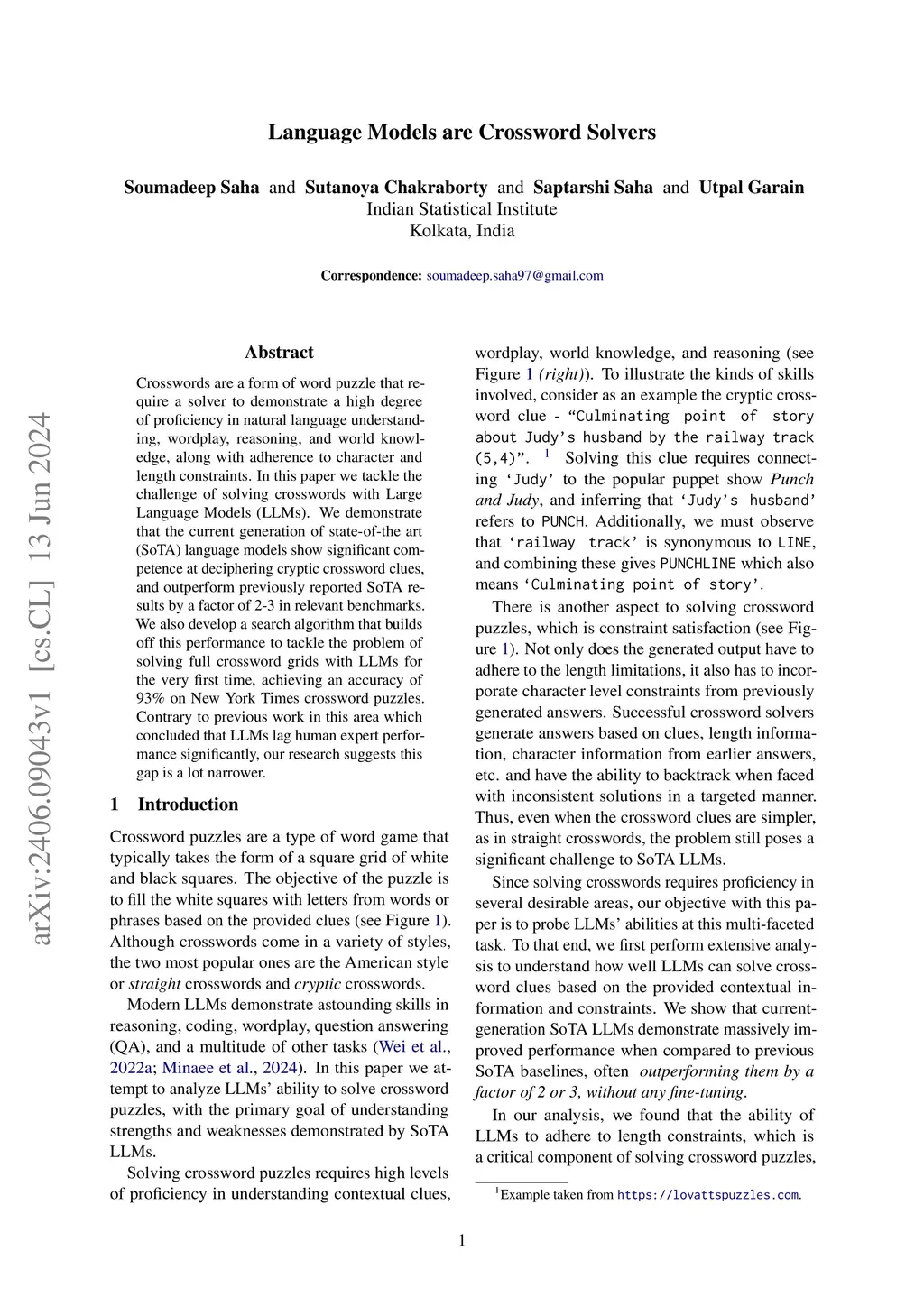 Language Models are Crossword Solvers