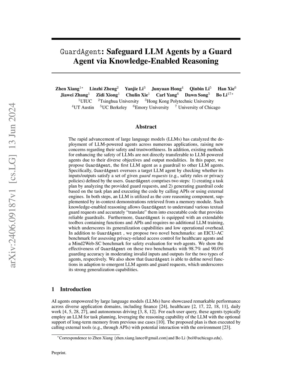 GuardAgent: Safeguard LLM Agents by a Guard Agent via Knowledge-Enabled Reasoning