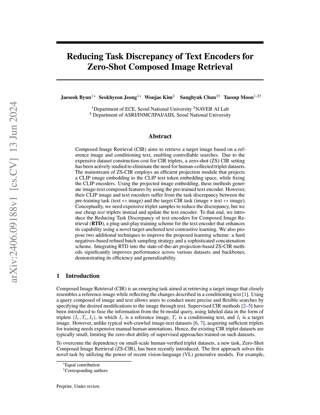 Composed Image Retrieval (CIR) aims to retrieve a target image based on a reference image and conditioning text, enabling controllable image searches. The mainstream Zero-Shot (ZS) CIR methods bypass the need for expensive training CIR triplets by projecting image embeddings into the text token embedding space, forming a composed query for retrieval. However, we highlight an inherent limitation in these projection-based CIR: a task discrepancy of text encoders between the original pre-training task of the encoders (text image) and the target CIR task (image + text image), which potentially negatively impacts CIR performance. To reduce such a discrepancy, a naive solution would be to train both image and text encoders with CIR triplets in a supervised manner. Instead, we introduce Reducing Task Discrepancy of Text Encoders (RTD), an efficient text-only post-hoc framework that complements projection-based CIR methods. We devise a novel target-anchored text contrastive learning designed to enhance the capability of the text encoder for CIR. We also propose two key enhancements: (1) a hard negative-based refined batch sampling strategy and (2) a refined concatenation scheme to further mitigate training-inference discrepancy. Integrating RTD into state-of-the-art projection-based methods achieves performance comparable to, or even surpassing, resource-intensive state-of-the-art synthetic CIR triplet-based approaches only with 23 minutes of additional training on 4 A100 GPUs (up to faster in training). Our code will be available upon acceptance.