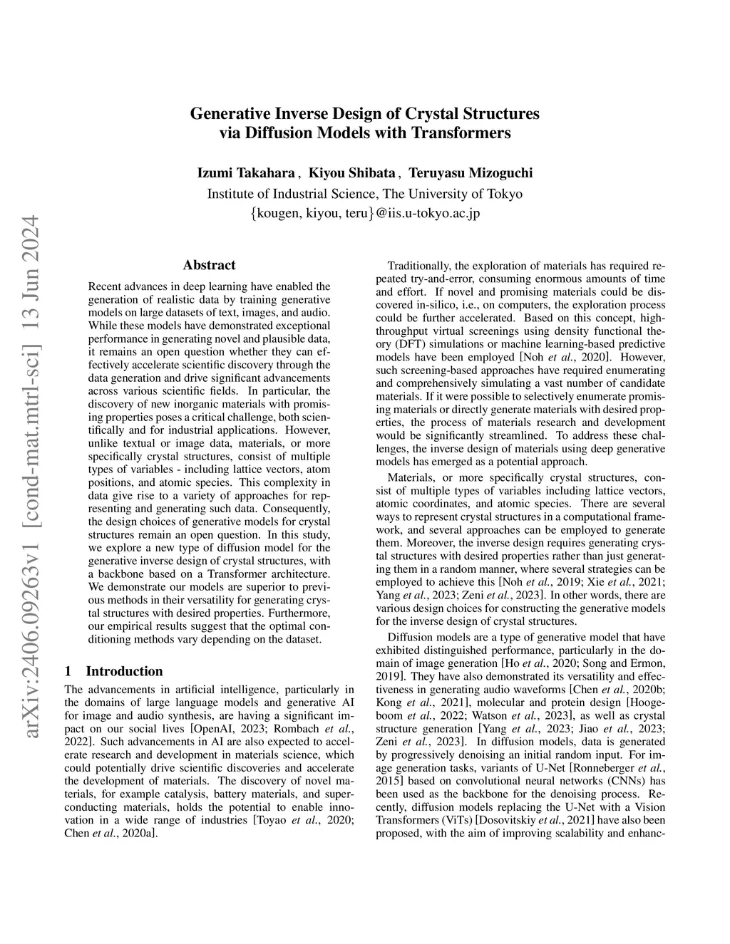 Recent advances in deep learning have enabled the generation of realistic data by training generative models on large datasets of text, images, and audio. While these models have demonstrated exceptional performance in generating novel and plausible data, it remains an open question whether they can effectively accelerate scientific discovery through the data generation and drive significant advancements across various scientific fields. In particular, the discovery of new inorganic materials with promising properties poses a critical challenge, both scientifically and for industrial applications. However, unlike textual or image data, materials, or more specifically crystal structures, consist of multiple types of variables - including lattice vectors, atom positions, and atomic species. This complexity in data give rise to a variety of approaches for representing and generating such data. Consequently, the design choices of generative models for crystal structures remain an open question. In this study, we explore a new type of diffusion model for the generative inverse design of crystal structures, with a backbone based on a Transformer architecture. We demonstrate our models are superior to previous methods in their versatility for generating crystal structures with desired properties. Furthermore, our empirical results suggest that the optimal conditioning methods vary depending on the dataset.