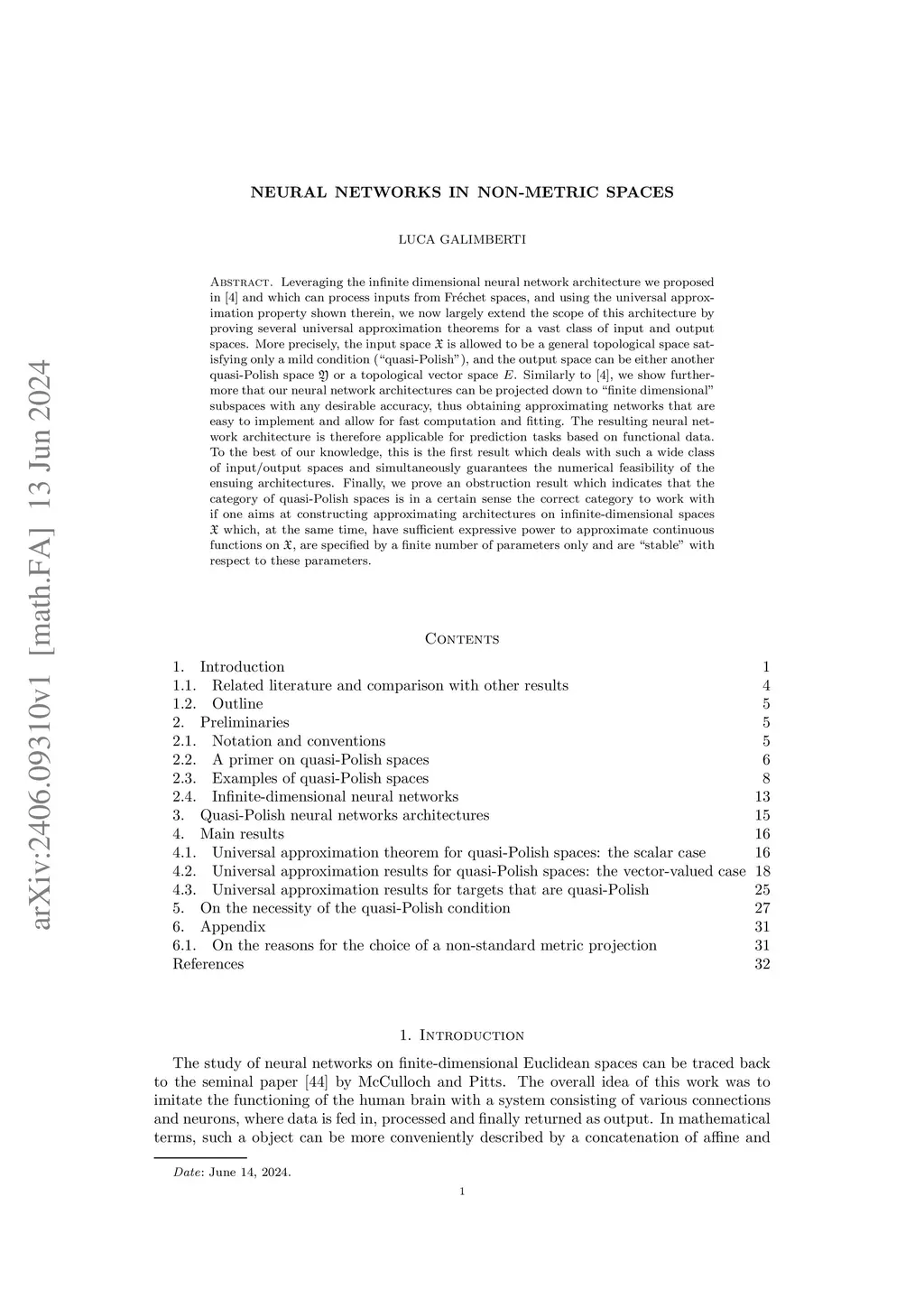 Leveraging the infinite dimensional neural network architecture we proposed in arXiv:2109.13512v4 and which can process inputs from Fr\échet spaces, and using the universal approximation property shown therein, we now largely extend the scope of this architecture by proving several universal approximation theorems for a vast class of input and output spaces. More precisely, the input space is allowed to be a general topological space satisfying only a mild condition ("quasi-Polish"), and the output space can be either another quasi-Polish space or a topological vector space . Similarly to arXiv:2109.13512v4, we show furthermore that our neural network architectures can be projected down to "finite dimensional" subspaces with any desirable accuracy, thus obtaining approximating networks that are easy to implement and allow for fast computation and fitting. The resulting neural network architecture is therefore applicable for prediction tasks based on functional data. To the best of our knowledge, this is the first result which deals with such a wide class of input/output spaces and simultaneously guarantees the numerical feasibility of the ensuing architectures. Finally, we prove an obstruction result which indicates that the category of quasi-Polish spaces is in a certain sense the correct category to work with if one aims at constructing approximating architectures on infinite-dimensional spaces which, at the same time, have sufficient expressive power to approximate continuous functions on , are specified by a finite number of parameters only and are "stable" with respect to these parameters.
