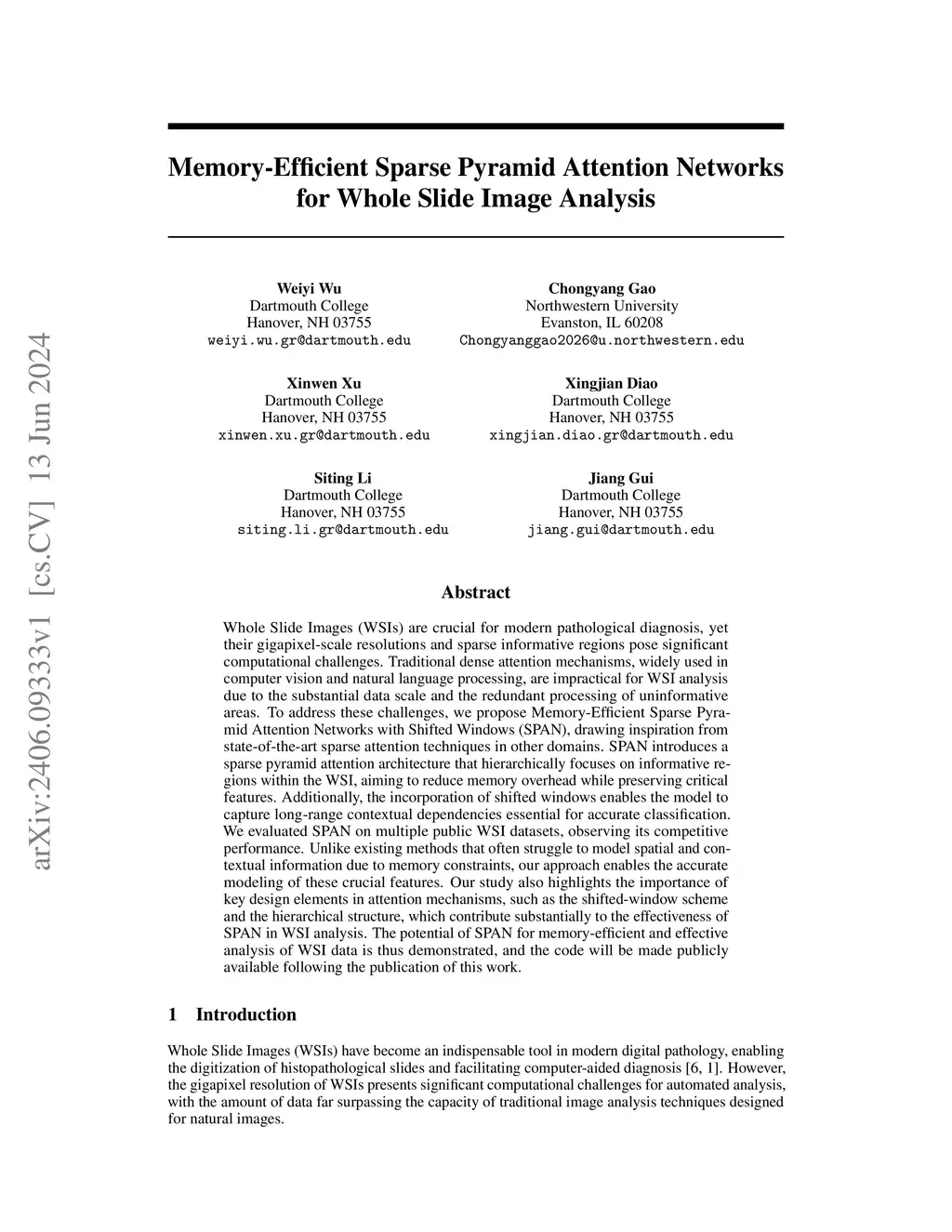 Whole slide images (WSIs) present fundamental computational challenges due to their gigapixel-scale resolutions and sparse, irregularly distributed informative regions. Conventional patch-based methods inevitably distort spatial relationships or treat patches as independent samples, while traditional attention mechanisms, designed for dense, uniformly distributed data, are computationally impractical for WSIs. To address these limitations, we propose a novel sparse-native computational framework that preserves exact spatial relationships, unlocking advanced modeling techniques and bridging a long-standing gap between WSI analysis and general vision. Based on this framework, we develop Sparse Pyramid Attention Networks (SPAN), incorporating a hierarchical sparse pyramid attention architecture with shifted windows that efficiently directs computational resources to informative regions. SPAN comprises two key modules: Spatial-Adaptive Feature Condensation, which progressively builds multi-scale representations from a single-scale input through sparse downsampling, and Context-Aware Feature Refinement, which captures long-range dependencies via shifted windows and global tokens. Evaluations on multiple public datasets demonstrate SPAN's superior performance over state-of-the-art methods, validating both our framework's effectiveness and SPAN's specific advantages in capturing contextual and hierachical representations that existing methods fundamentally cannot model. Our work establishes a new paradigm for WSI analysis that overcomes long-standing computational barriers. The code will be made publicly available upon publication.