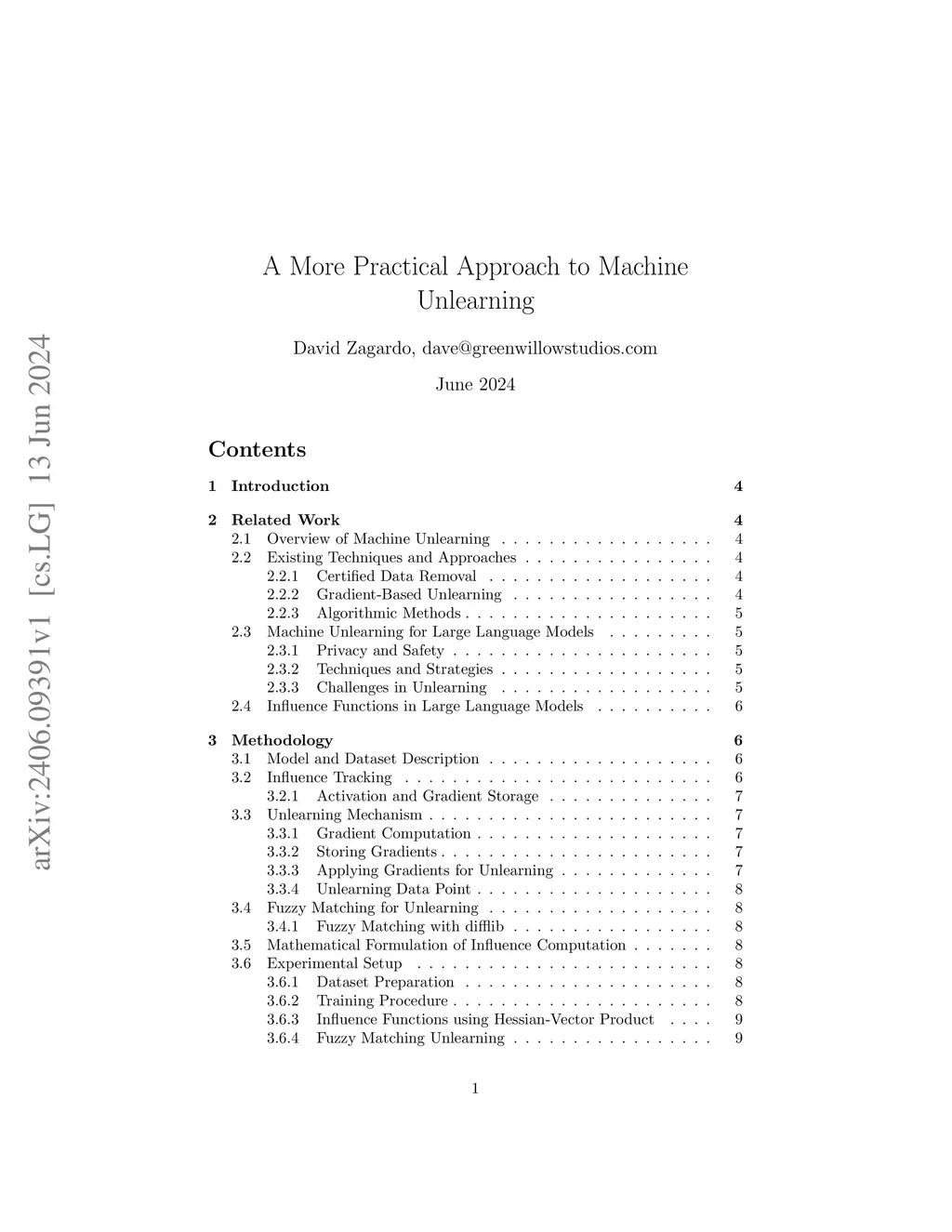 Machine learning models often incorporate vast amounts of data, raising significant privacy concerns. Machine unlearning, the ability to remove the influence of specific data points from a trained model, addresses these concerns. This paper explores practical methods for implementing machine unlearning, focusing on a first-epoch gradient-ascent approach. Key findings include: 1. Single vs. Multi-Epoch Unlearning: First-epoch gradient unlearning is more effective than multi-epoch gradients. 2. Layer-Based Unlearning: The embedding layer in GPT-2 is crucial for effective unlearning. Gradients from the output layers (11 and 12) have no impact. Efficient unlearning can be achieved using only the embedding layer, halving space complexity. 3. Influence Functions & Scoring: Techniques like Hessian Vector Product and the dot product of activations and tensors are used for quantifying unlearning. 4. Gradient Ascent Considerations: Calibration is necessary to avoid overexposing the model to specific data points during unlearning, which could prematurely terminate the process. 5. Fuzzy Matching vs. Iterative Unlearning: Fuzzy matching techniques shift the model to a new optimum, while iterative unlearning provides a more complete modality. Our empirical evaluation confirms that first-epoch gradient ascent for machine unlearning is more effective than whole-model gradient ascent. These results highlight the potential of machine unlearning for enhancing data privacy and compliance with regulations such as GDPR and CCPA. The study underscores the importance of formal methods to comprehensively evaluate the unlearning process.