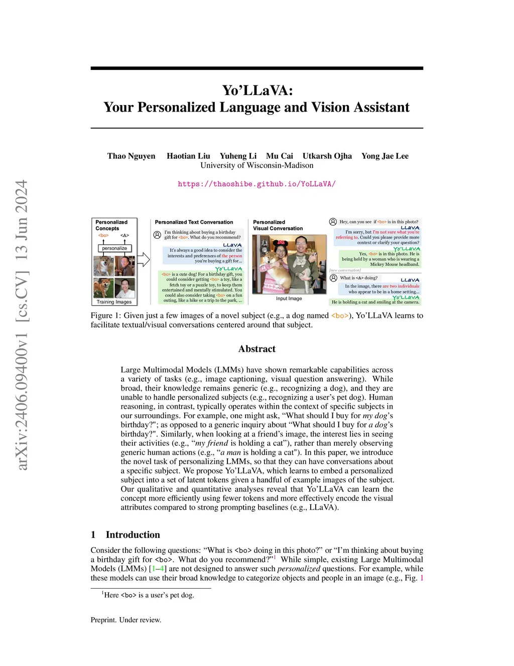 Yo'LLaVA: Your Personalized Language and Vision Assistant