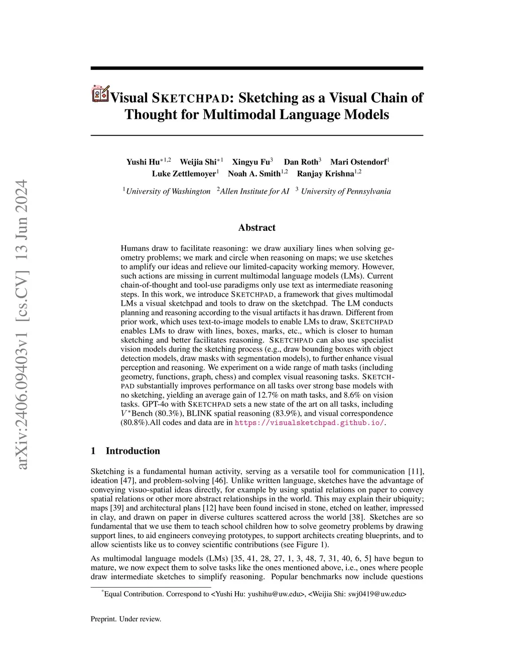 Visual Sketchpad: Sketching as a Visual Chain of Thought for Multimodal