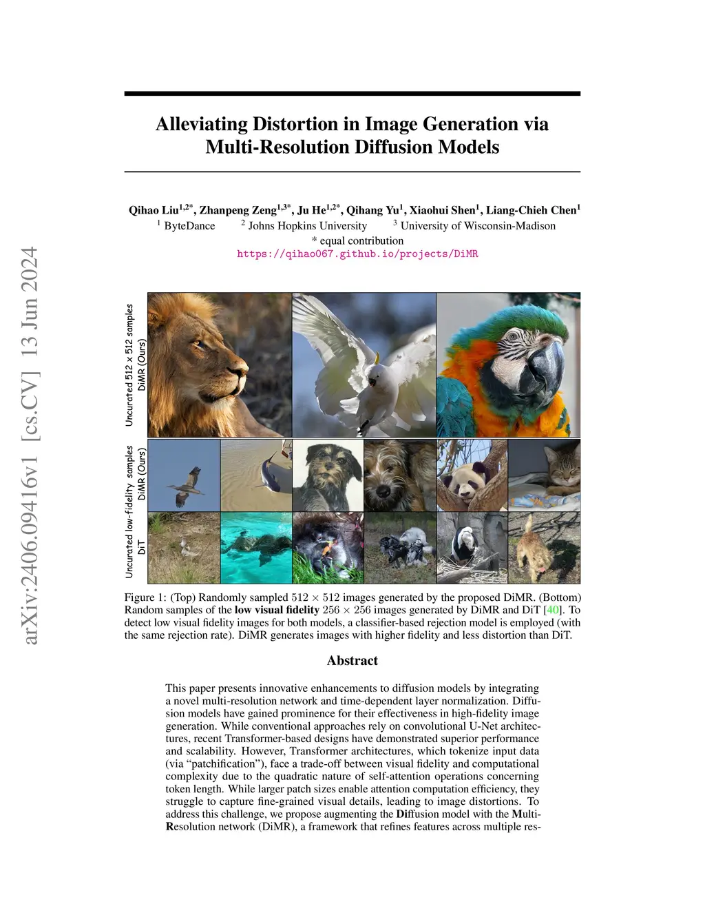 Alleviating Distortion in Image Generation via Multi-Resolution