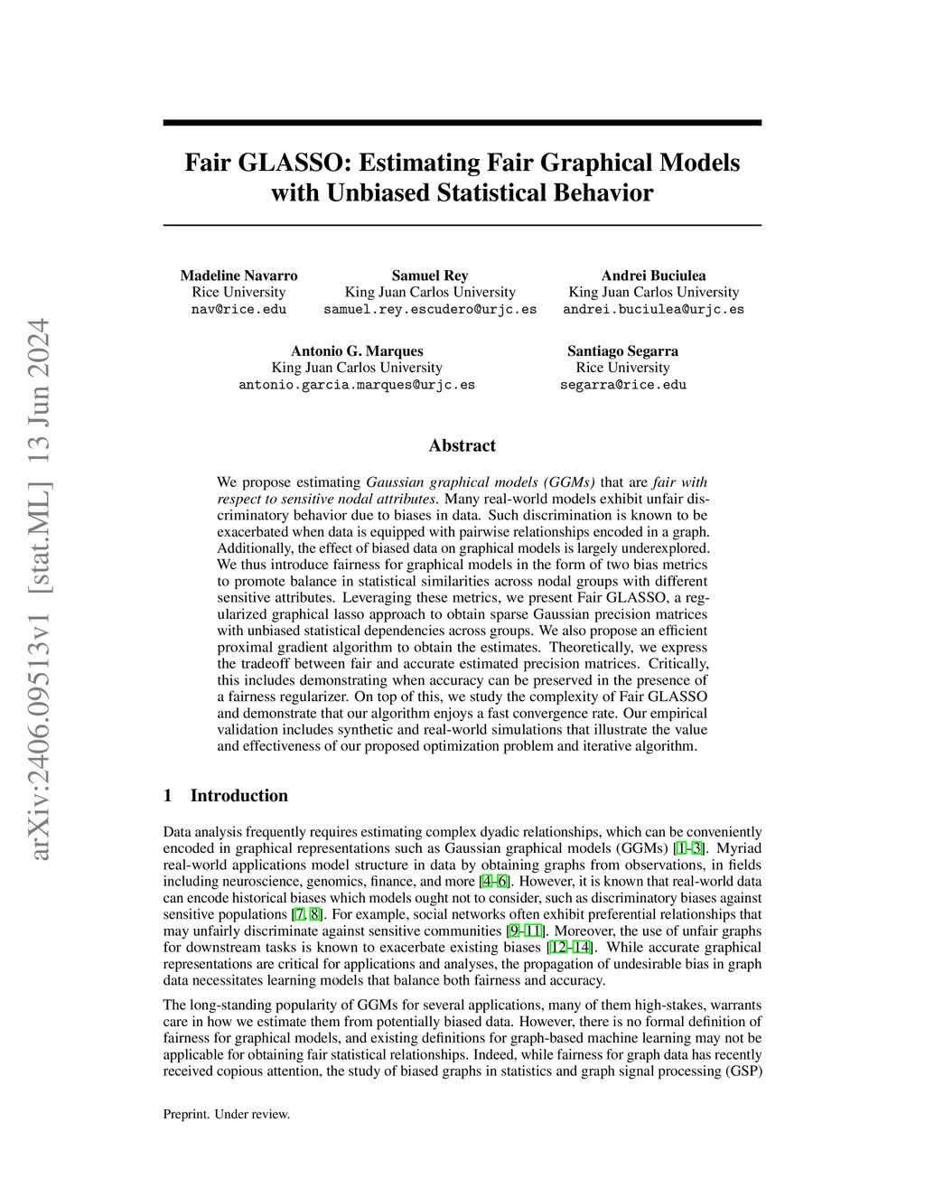 Fair GLASSO: Estimating Fair Graphical Models with Unbiased Statistical
