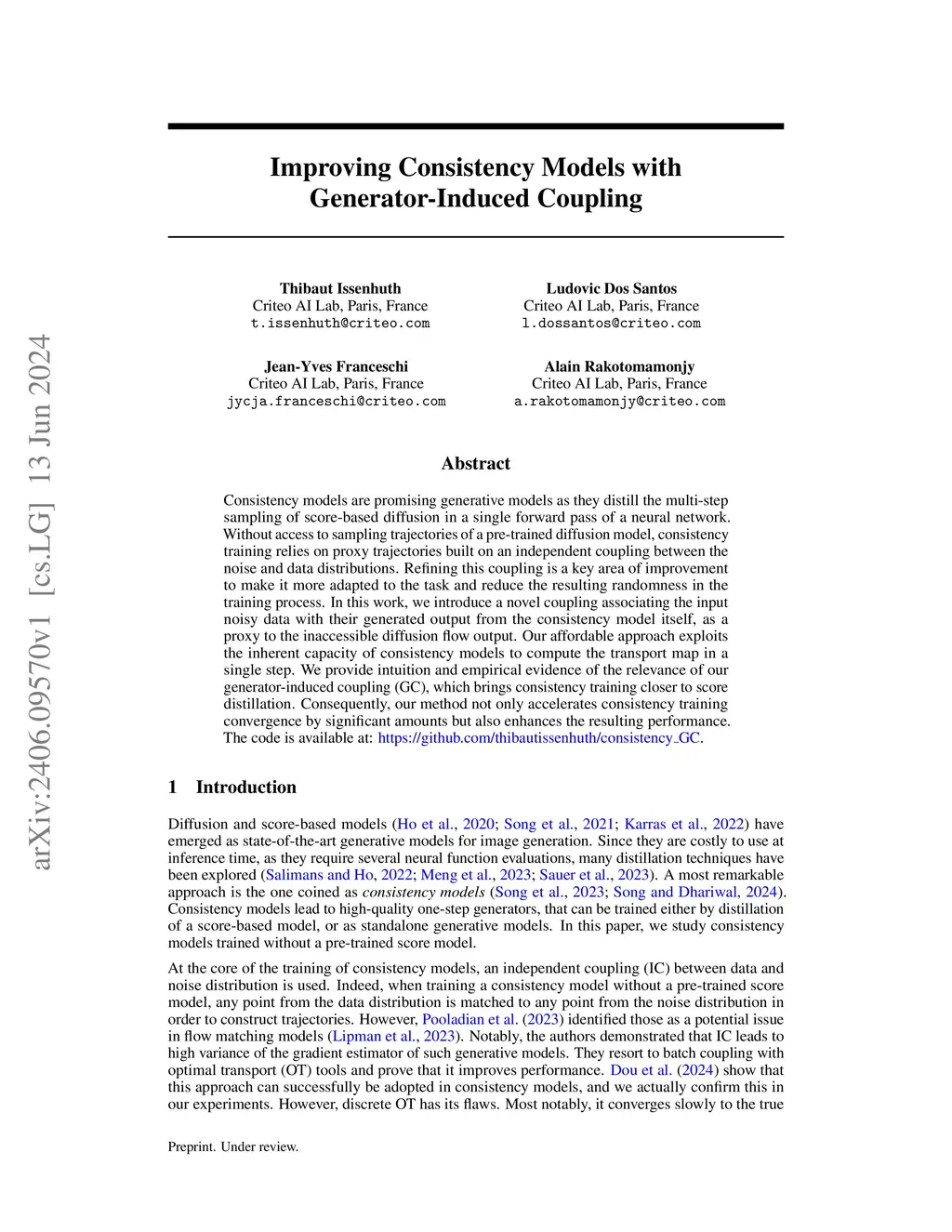 Consistency models imitate the multi-step sampling of score-based diffusion in a single forward pass of a neural network. They can be learned in two ways: consistency distillation and consistency training. The former relies on the true velocity field of the corresponding differential equation, approximated by a pre-trained neural network. In contrast, the latter uses a single-sample Monte Carlo estimate of this velocity field. The related estimation error induces a discrepancy between consistency distillation and training that, we show, still holds in the continuous-time limit. To alleviate this issue, we propose a novel flow that transports noisy data towards their corresponding outputs derived from a consistency model. We prove that this flow reduces the previously identified discrepancy and the noise-data transport cost. Consequently, our method not only accelerates consistency training convergence but also enhances its overall performance. The code is available at:this https URL.
