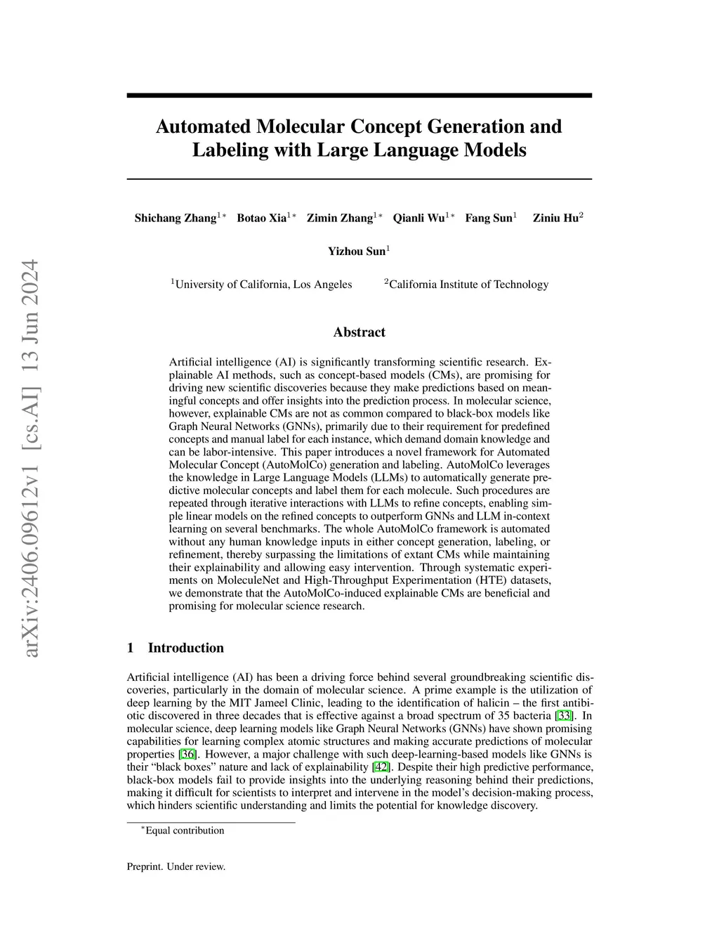 Automated Molecular Concept Generation and Labeling with Large Language