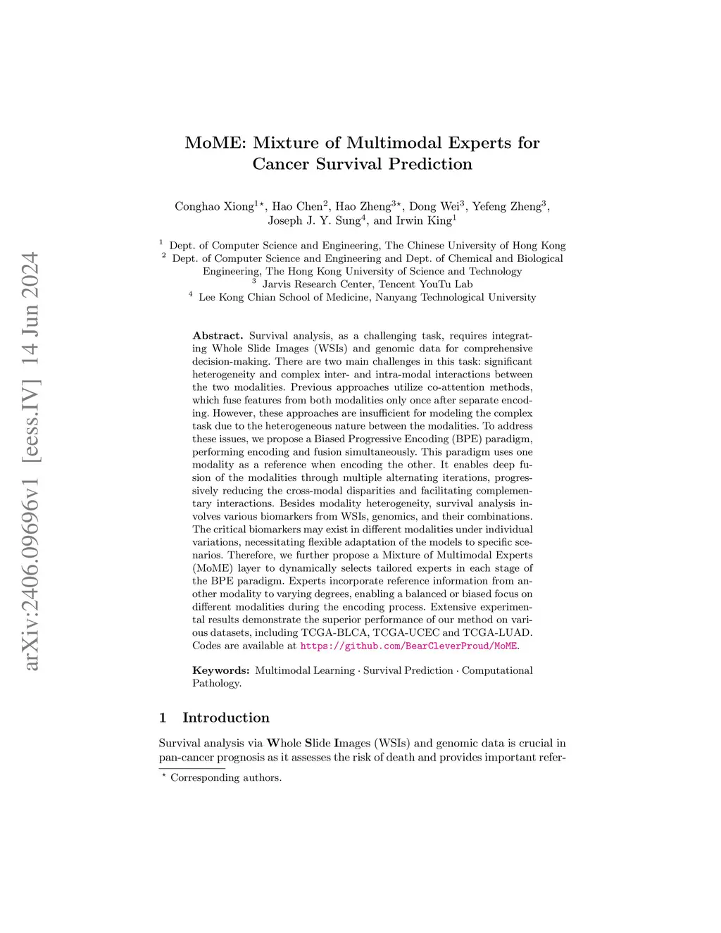 MoME: Mixture of Multimodal Experts for Cancer Survival Prediction