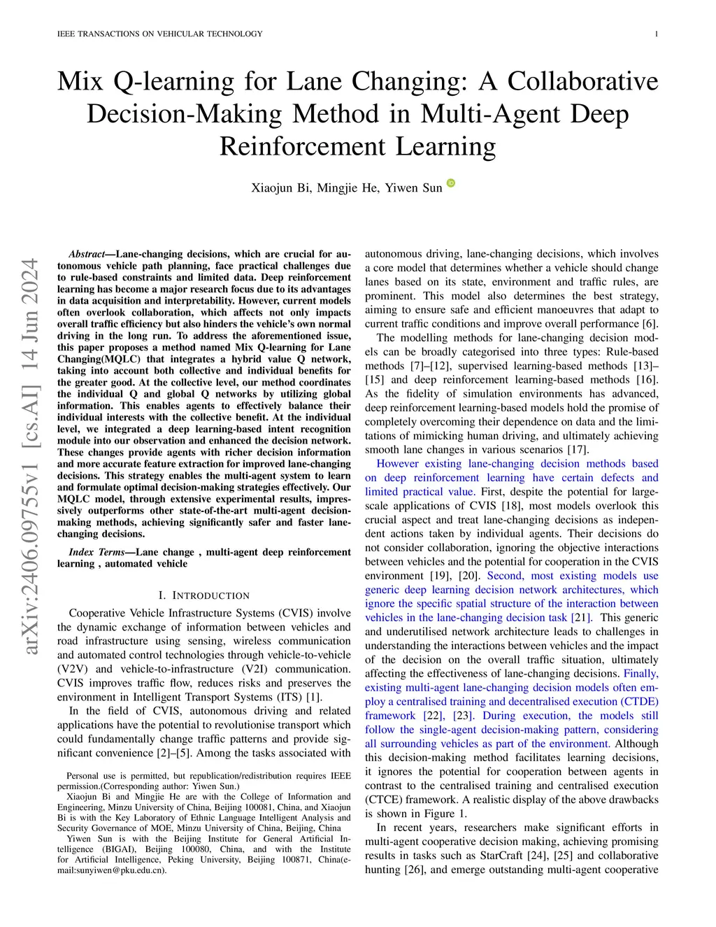 Mix Q-learning for Lane Changing: A Collaborative Decision-Making Method in Multi-Agent Deep Reinforcement Learning