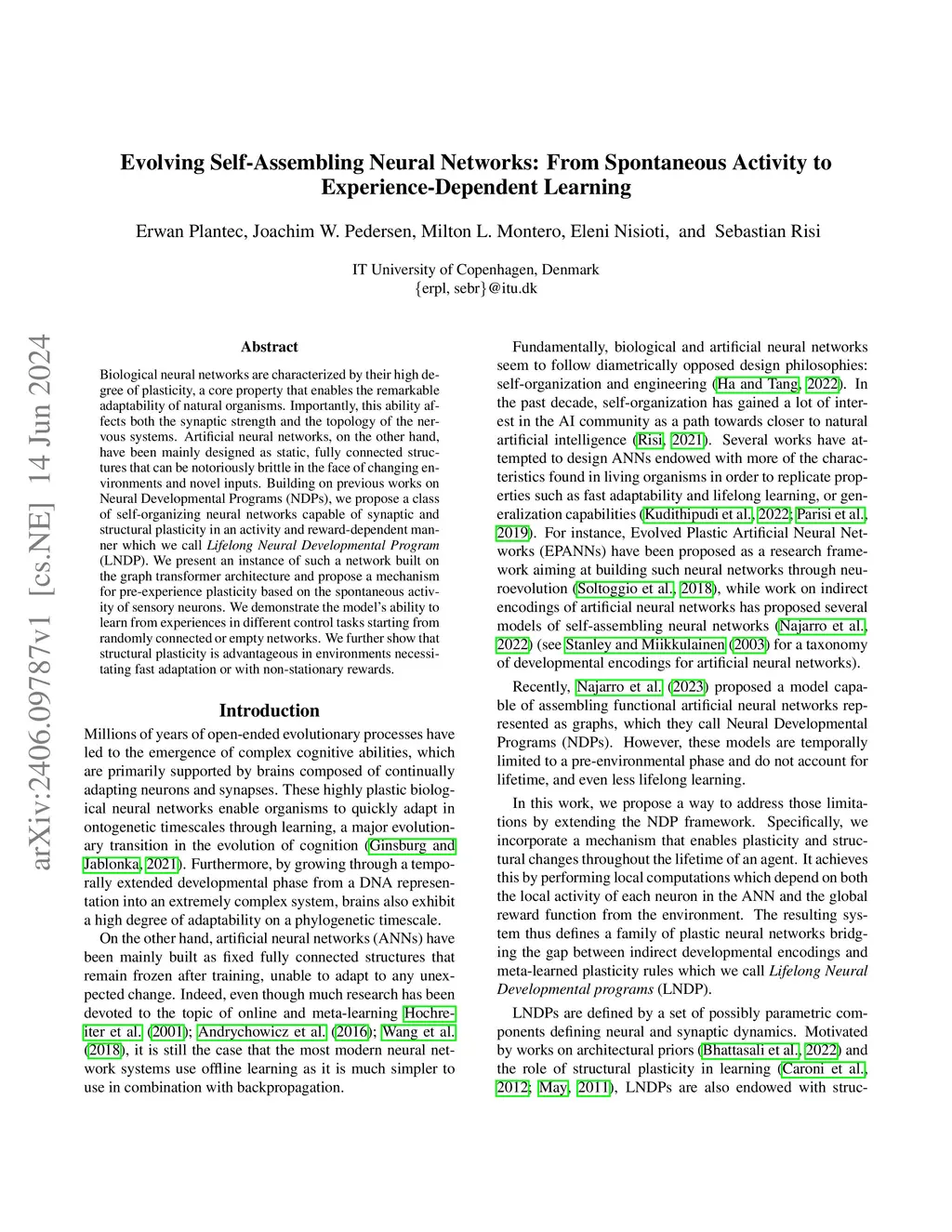Biological neural networks are characterized by their high degree of plasticity, a core property that enables the remarkable adaptability of natural organisms. Importantly, this ability affects both the synaptic strength and the topology of the nervous systems. Artificial neural networks, on the other hand, have been mainly designed as static, fully connected structures that can be notoriously brittle in the face of changing environments and novel inputs. Building on previous works on Neural Developmental Programs (NDPs), we propose a class of self-organizing neural networks capable of synaptic and structural plasticity in an activity and reward-dependent manner which we call Lifelong Neural Developmental Program (LNDP). We present an instance of such a network built on the graph transformer architecture and propose a mechanism for pre-experience plasticity based on the spontaneous activity of sensory neurons. Our results demonstrate the ability of the model to learn from experiences in different control tasks starting from randomly connected or empty networks. We further show that structural plasticity is advantageous in environments necessitating fast adaptation or with non-stationary rewards.