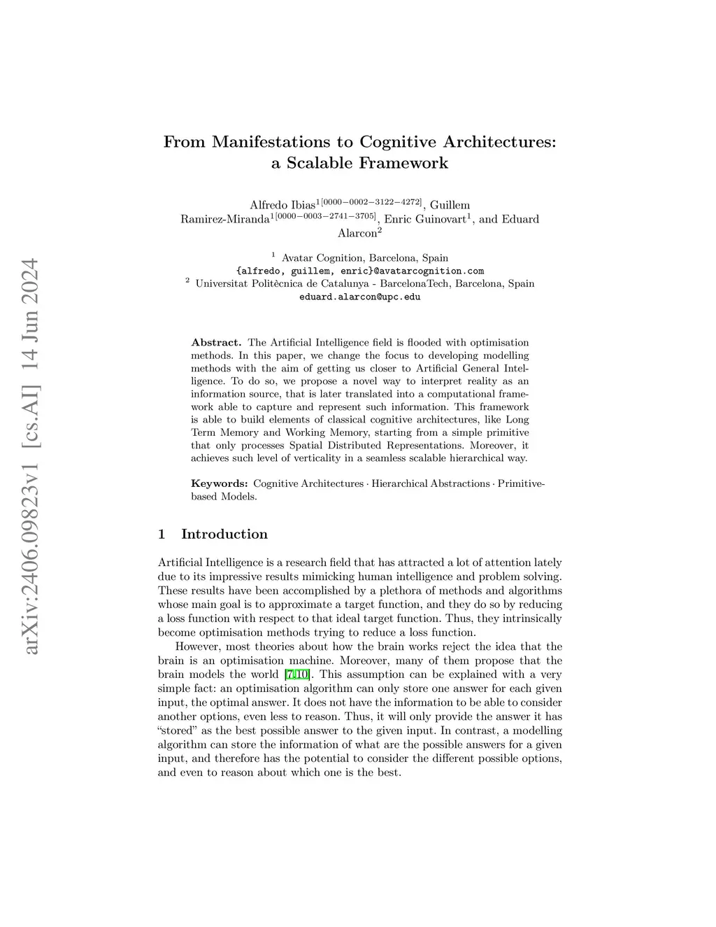 The Artificial Intelligence field is flooded with optimisation methods. In this paper, we change the focus to developing modelling methods with the aim of getting us closer to Artificial General Intelligence. To do so, we propose a novel way to interpret reality as an information source, that is later translated into a computational framework able to capture and represent such information. This framework is able to build elements of classical cognitive architectures, like Long Term Memory and Working Memory, starting from a simple primitive that only processes Spatial Distributed Representations. Moreover, it achieves such level of verticality in a seamless scalable hierarchical way.