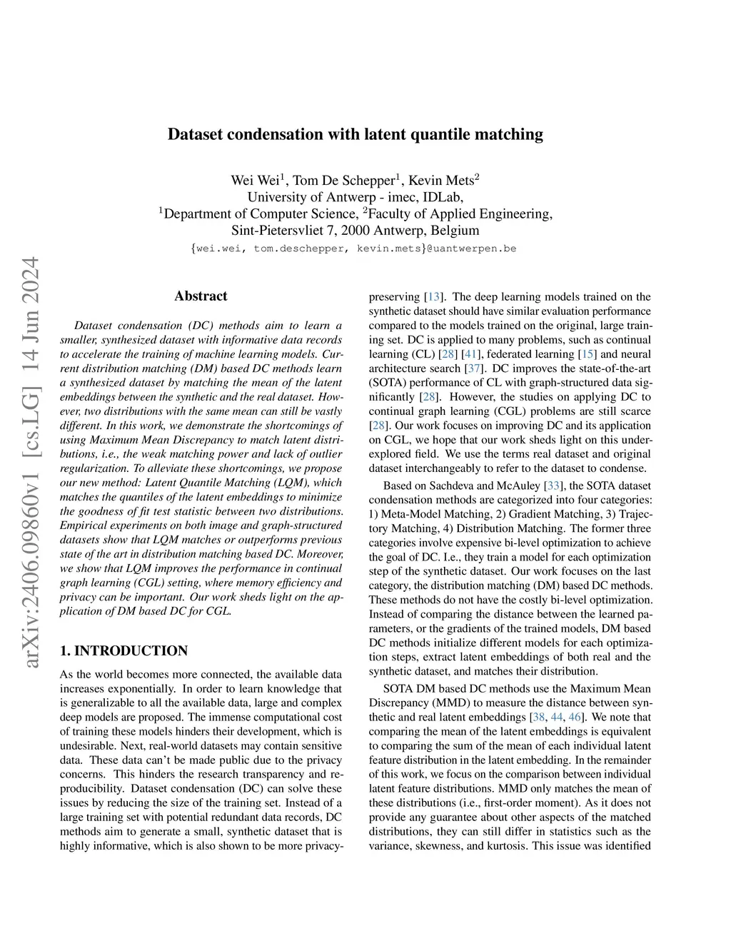 Dataset condensation (DC) methods aim to learn a smaller synthesized dataset with informative data records to accelerate the training of machine learning models. Current distribution matching (DM) based DC methods learn a synthesized dataset by matching the mean of the latent embeddings between the synthetic and the real dataset. However two distributions with the same mean can still be vastly different. In this work we demonstrate the shortcomings of using Maximum Mean Discrepancy to match latent distributions i.e. the weak matching power and lack of outlier regularization. To alleviate these shortcomings we propose our new method: Latent Quantile Matching (LQM) which matches the quantiles of the latent embeddings to minimize the goodness of fit test statistic between two distributions. Empirical experiments on both image and graph-structured datasets show that LQM matches or outperforms previous state of the art in distribution matching based DC. Moreover we show that LQM improves the performance in continual graph learning (CGL) setting where memory efficiency and privacy can be important. Our work sheds light on the application of DM based DC for CGL.