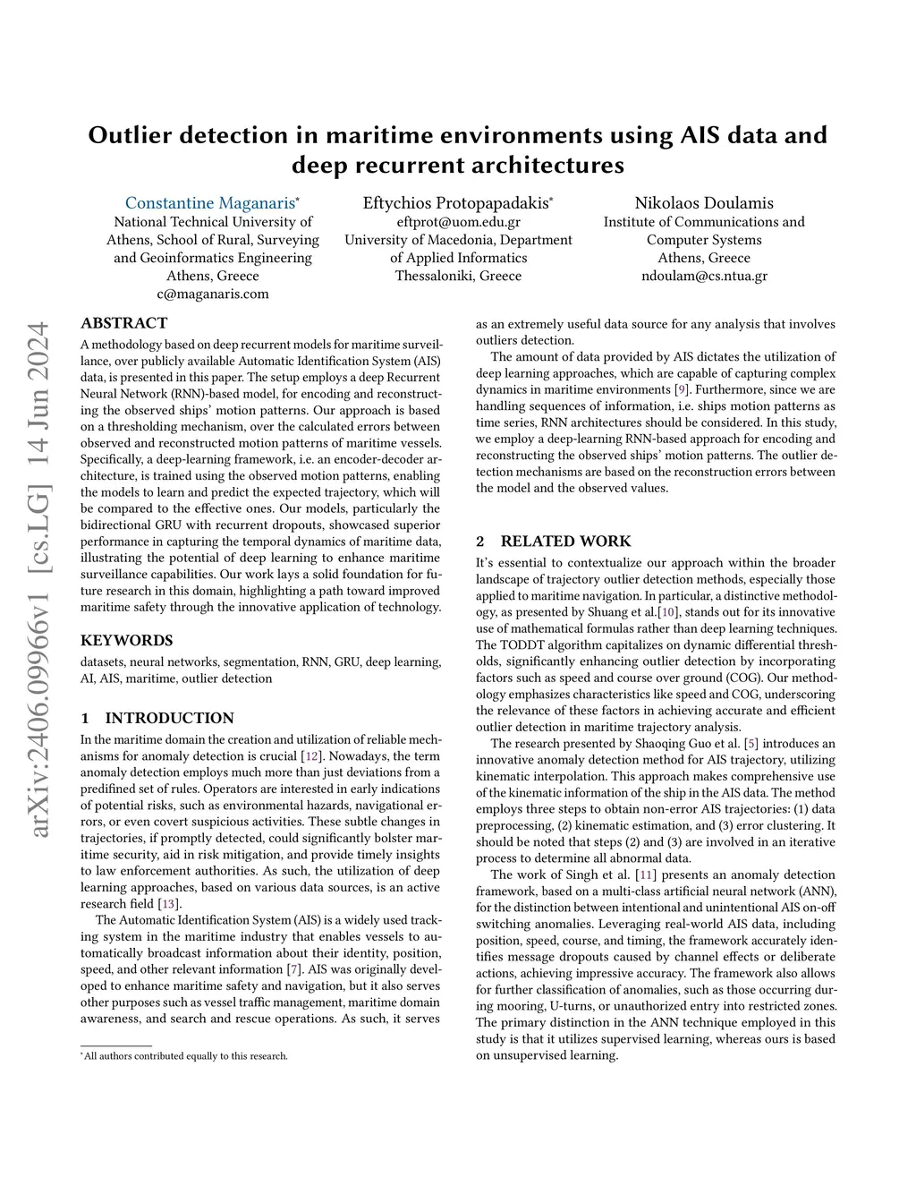 Outlier detection in maritime environments using AIS data and deep