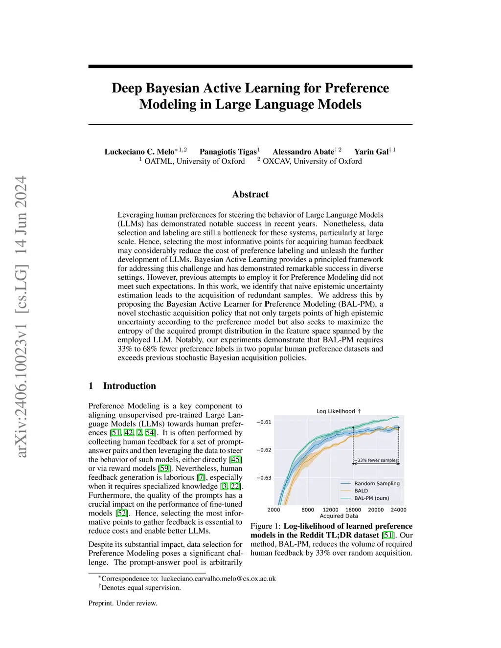 Deep Bayesian Active Learning for Preference Modeling in Large Language