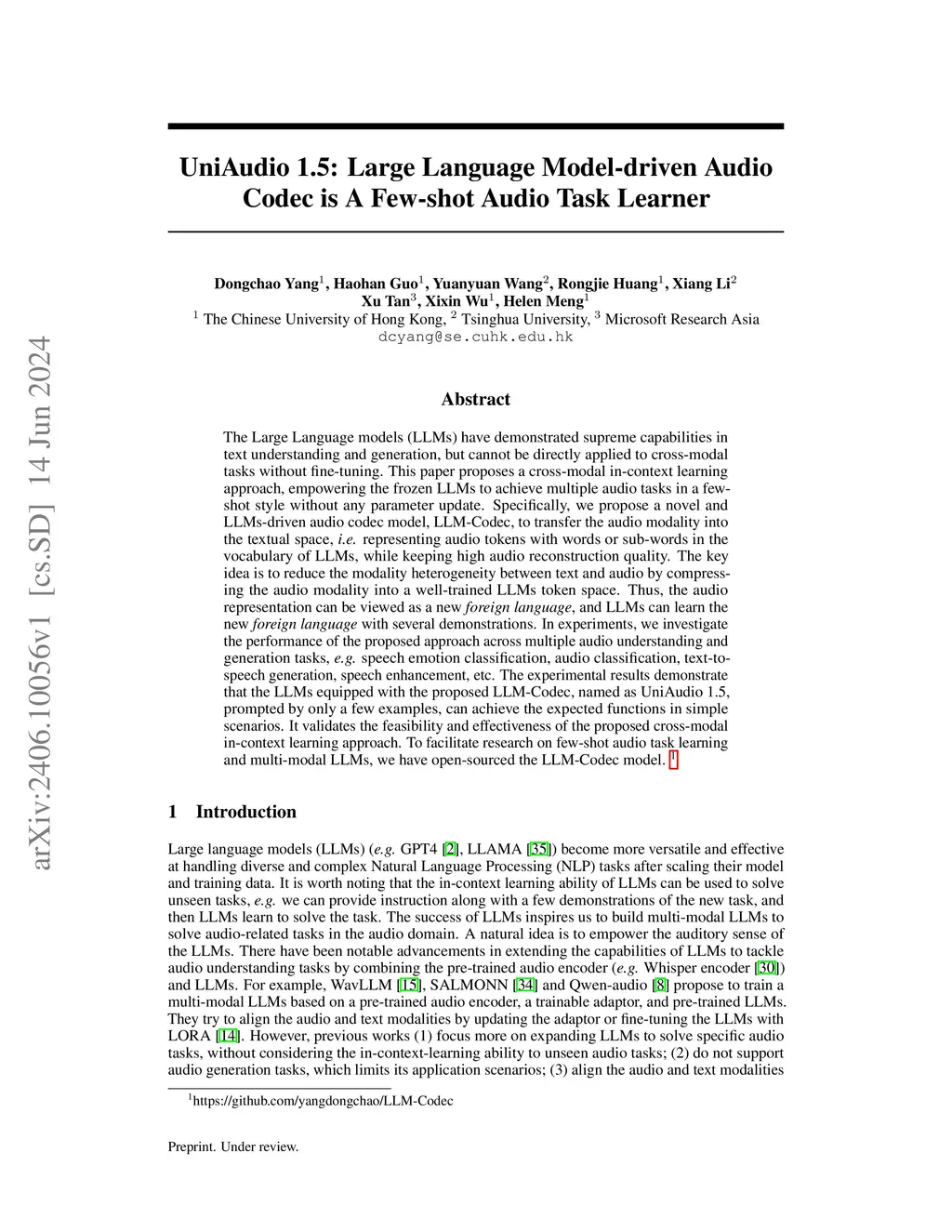 UniAudio 1.5: Large Language Model-driven Audio Codec is A Few-shot