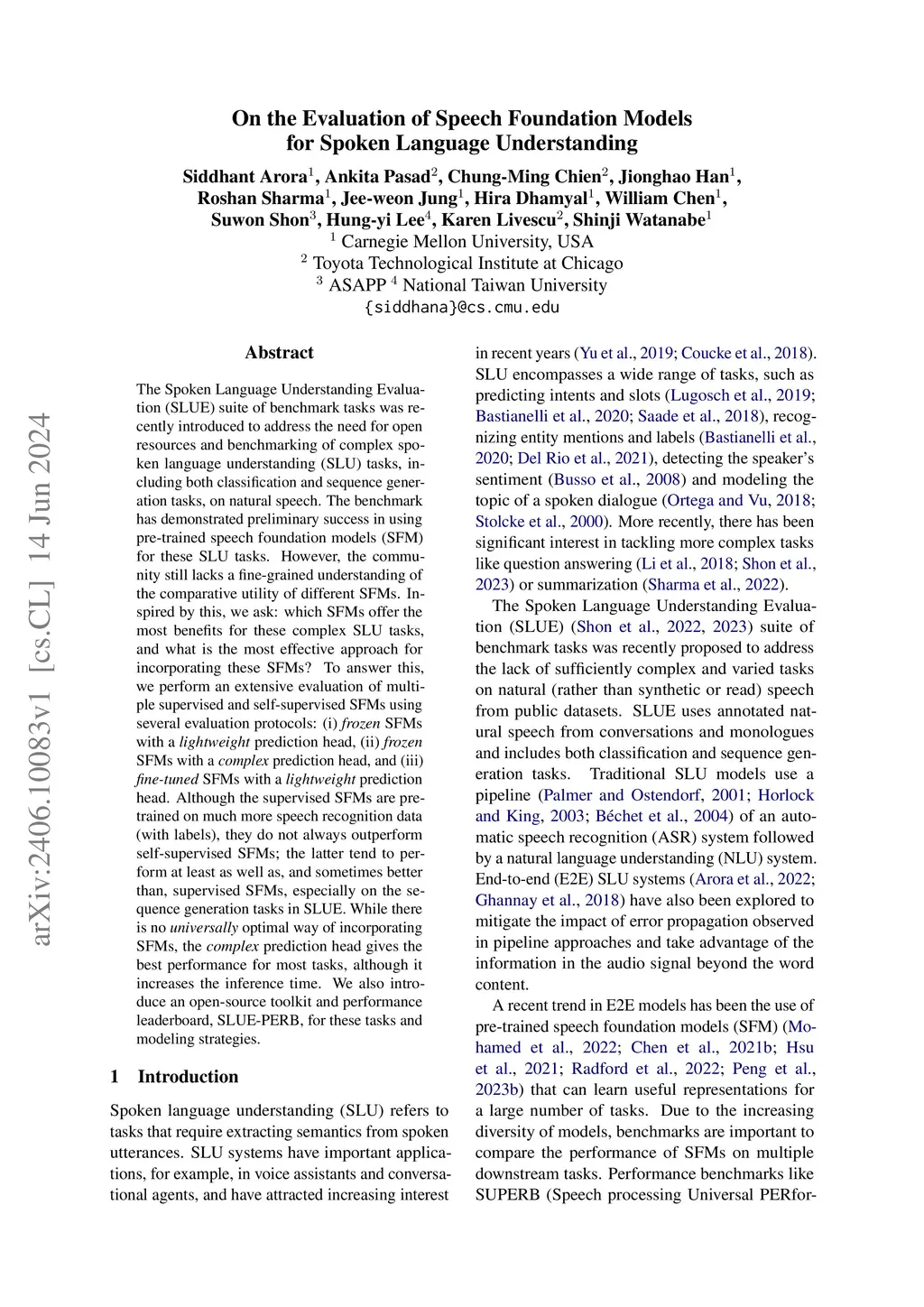 On the Evaluation of Speech Foundation Models for Spoken Language