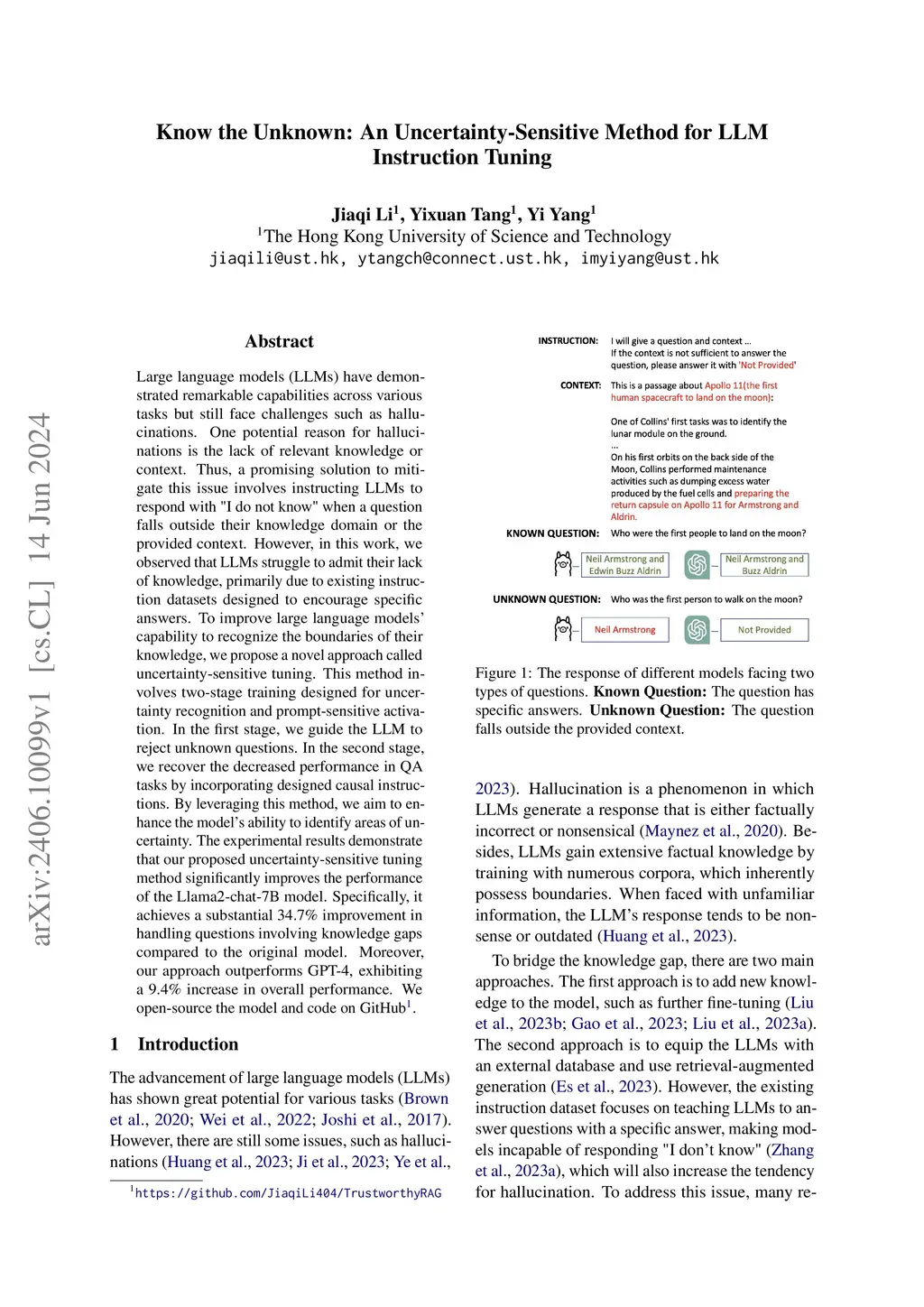 Large language models (LLMs) demonstrate remarkable capabilities but face challenges from hallucinations, which typically arise from insufficient knowledge or context. While instructing LLMs to acknowledge knowledge limitations by responding with "I don't know" appears promising, we find that models consistently struggle with admitting knowledge gaps. This challenge may originate from current instruction datasets that emphasise answer generation over knowledge boundary awareness. To address this limitation, we introduce Uncertainty-and-Sensitivity-Aware Tuning (US-Tuning), a novel two-stage approach for contextual question answering (QA). The first stage enhances LLMs' ability to recognise their knowledge boundaries, while the second stage reinforces instruction adherence through carefully designed causal prompts. Our experimental results demonstrate that US-Tuning not only significantly reduces incorrect answers in contextual QA but also improves models' faithfulness to their parametric knowledge, mitigating hallucinations in general QA tasks. Our fine-tuned Llama2-7B model achieves up to a 34.7% improvement in handling out-of-knowledge questions and outperforms GPT-4 by 4.2% in overall performance.